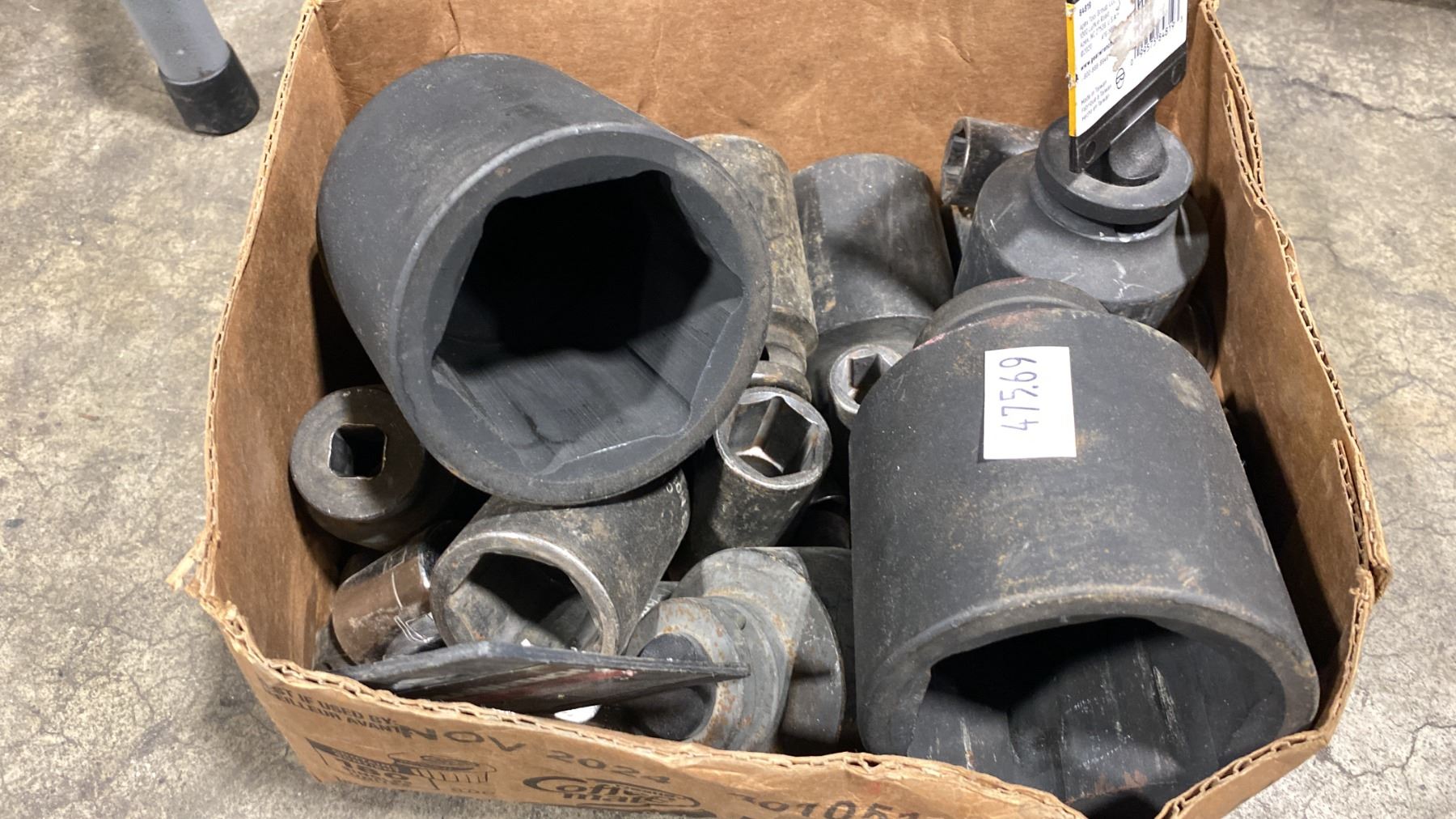 BOX OF INDUSTRIAL BLACK HEAVY DUTY ASSORTED LARGE IMPACT SOCKETS