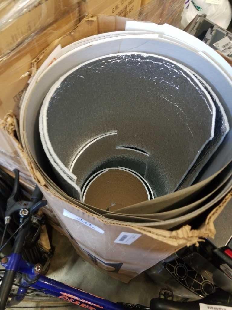 BOX OF INSULATED FOIL, WOOD BOARD AND MORE