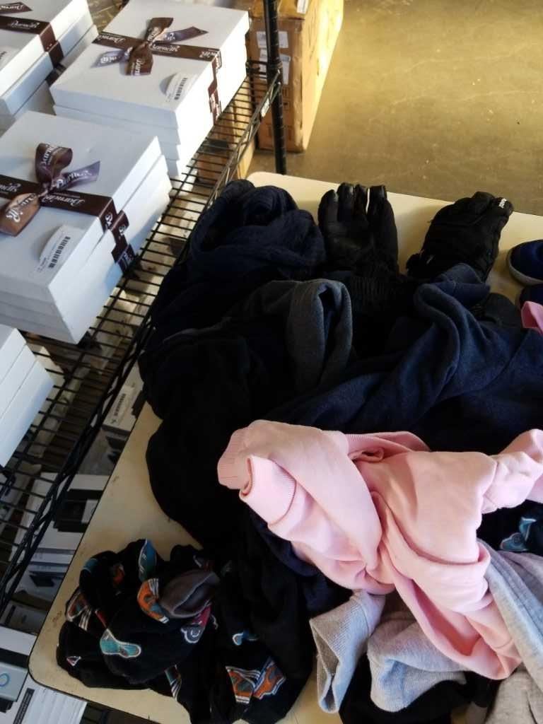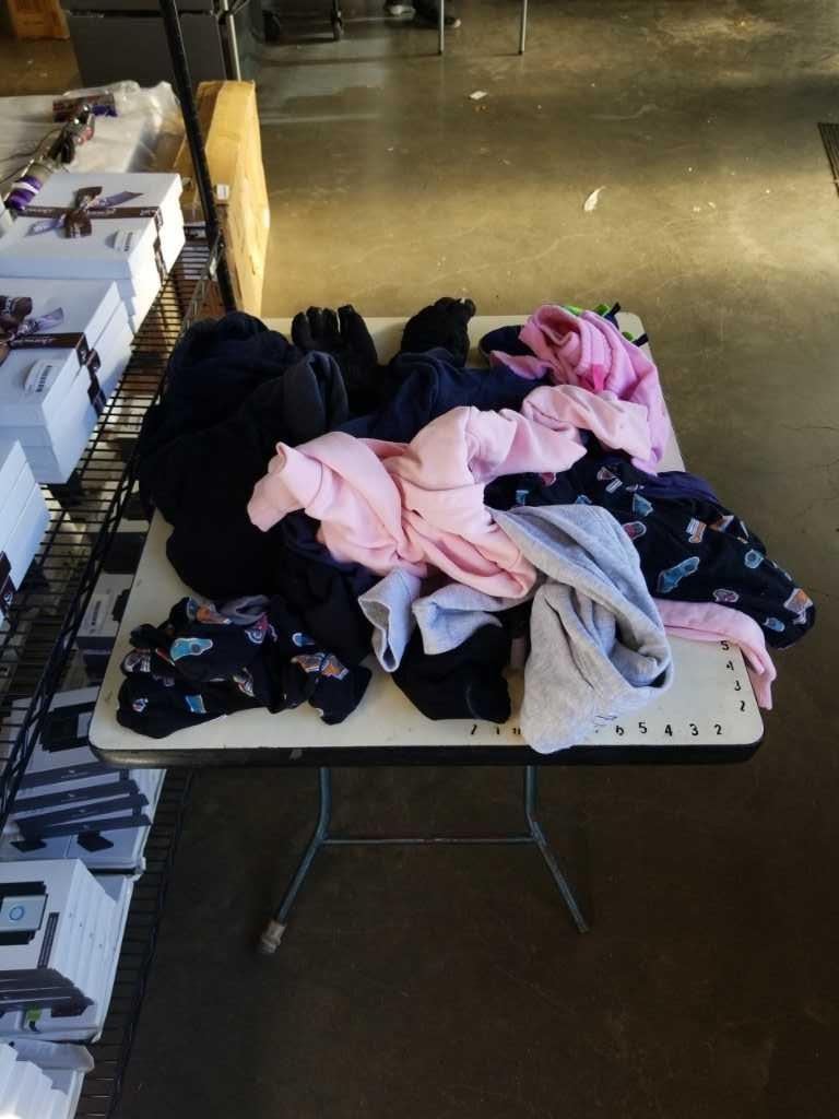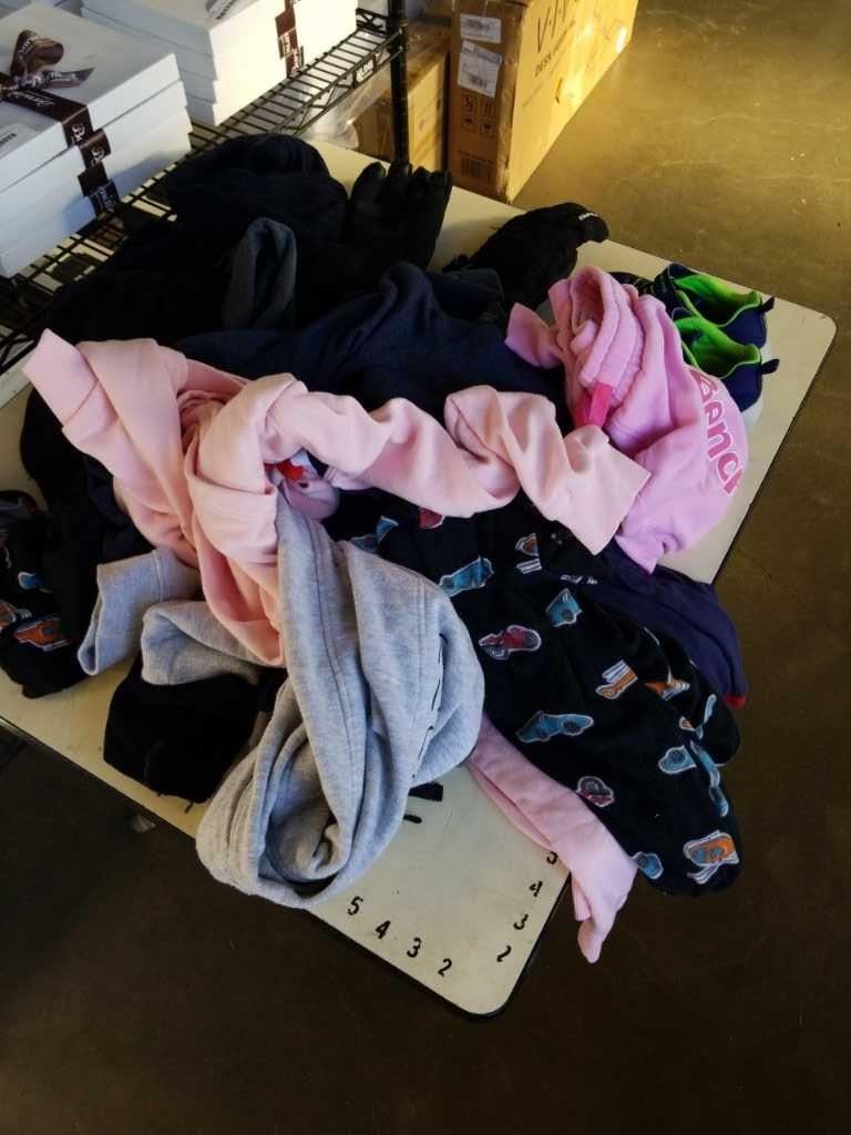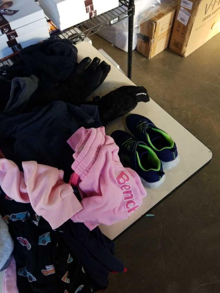 BOX OF KIDS SIZE 6 - 8 CLOTHES, SKETCHERS SHOES SIZE ONE AND HEAD GLOVES