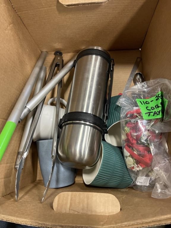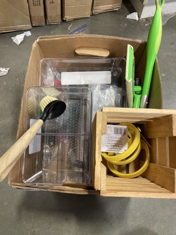 BOX OF KITCHEN KNIVES, CUTLERY ORGANIZER AND MORE