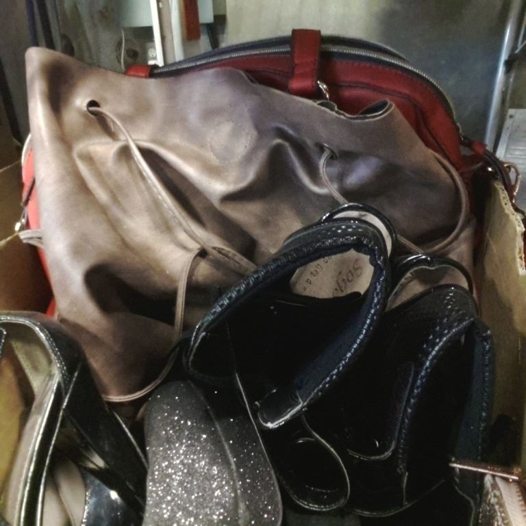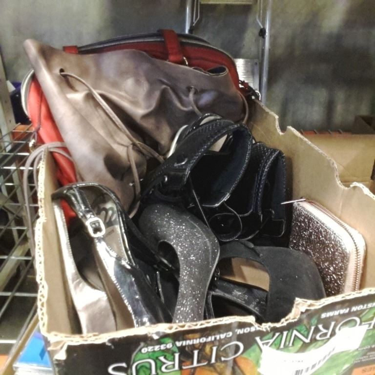 BOX OF LADIES SHOES AND PURSES - SIZE 7 AND 8