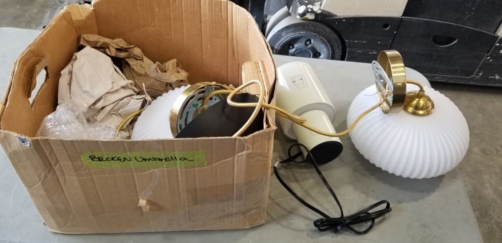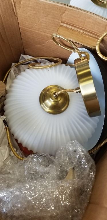 BOX OF LIGHT FIXTURES - 2 SCONCES W/ MILK GLASS SHADES