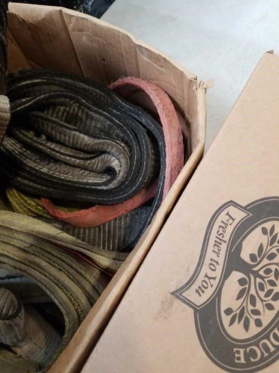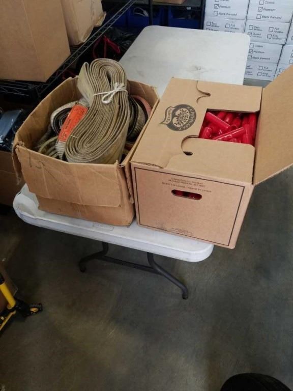 BOX OF LOAD STRAPS AND TOOL HANDLE COVERS