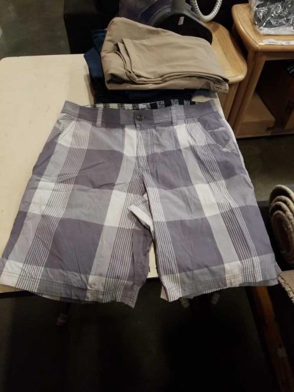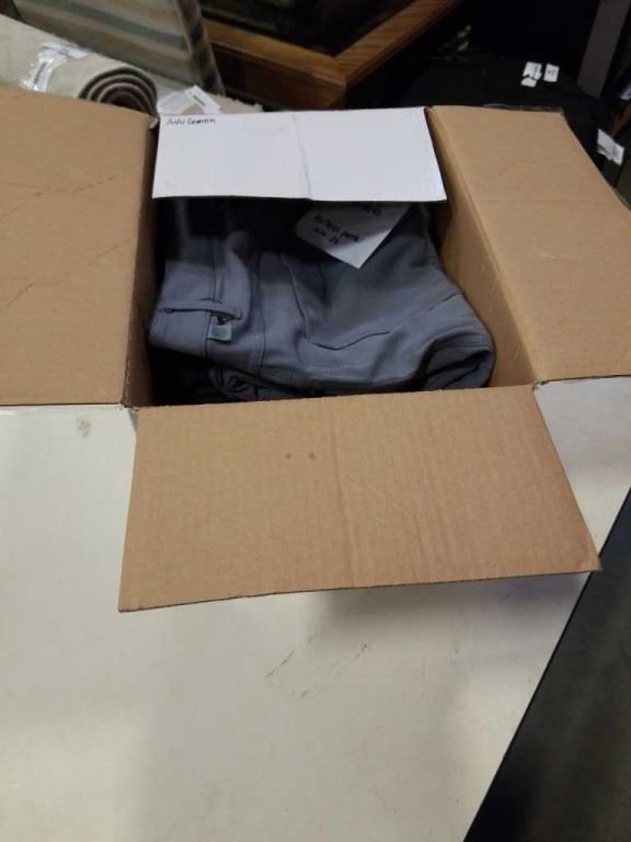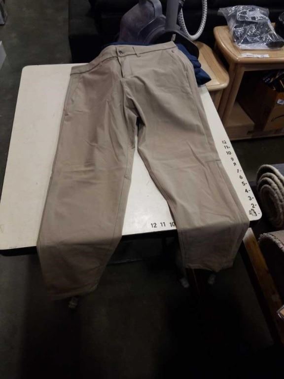 BOX OF LULULEMON CLOTHING MENS 34,38, 40 ARCTERYX PANTS SIZE 36