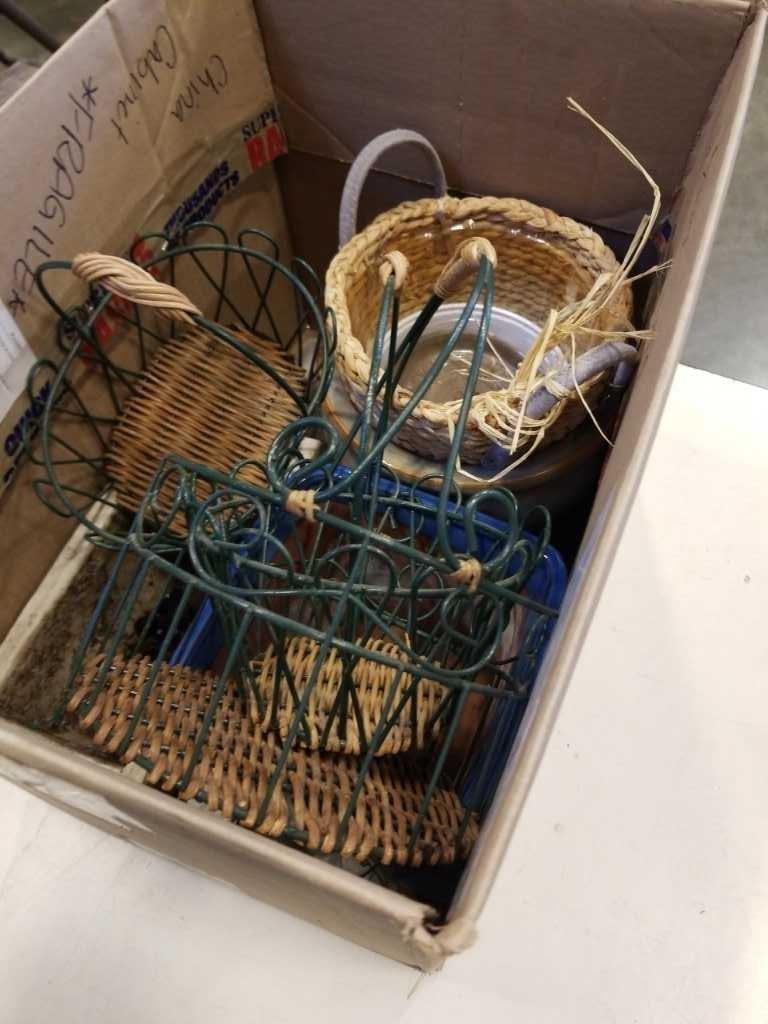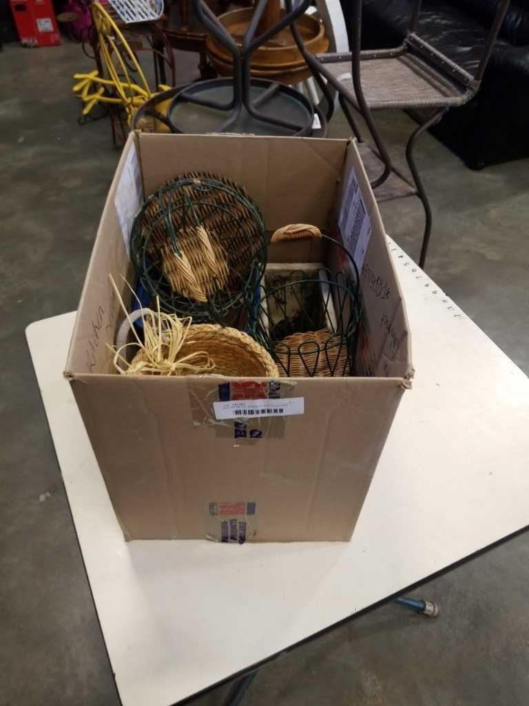 BOX OF METAL BASKETS AND PLANTERS