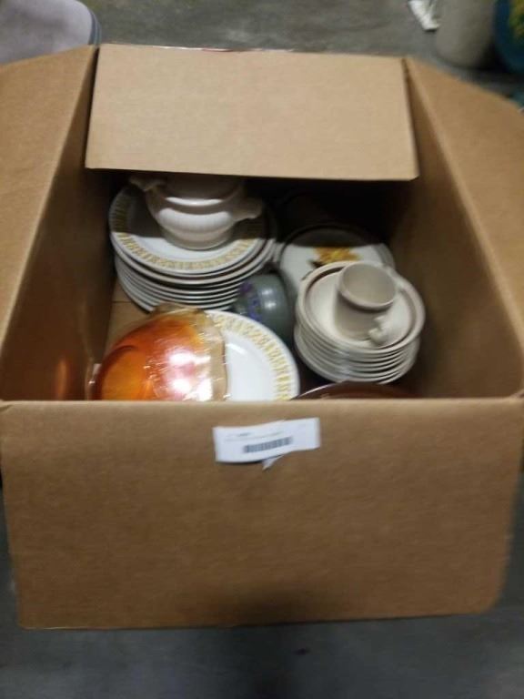 BOX OF MID CENTURY DISHES - STATASTONE, HEATH, ARMORLITE