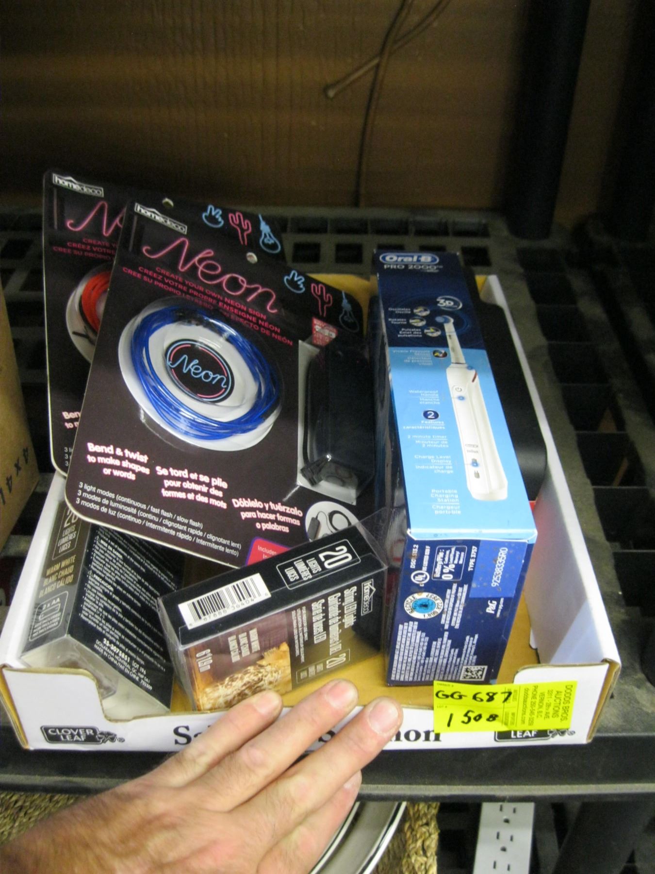 BOX OF MISC ELECTRIC TOOTHBRUSH, NEON SIGN MATERIAL ETC