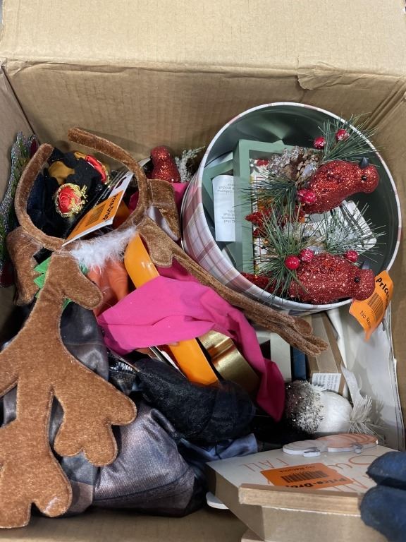 BOX OF NEW CHRISTMAS DECORATIONS