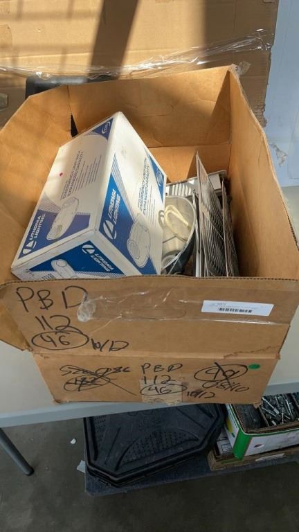 BOX OF NEW EMERGENCY LIGHT VENT GRATES AND LAMPS