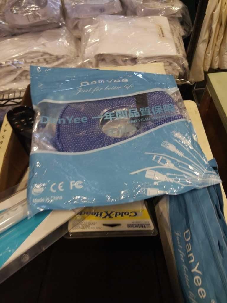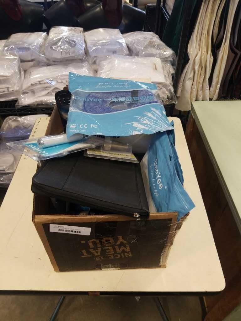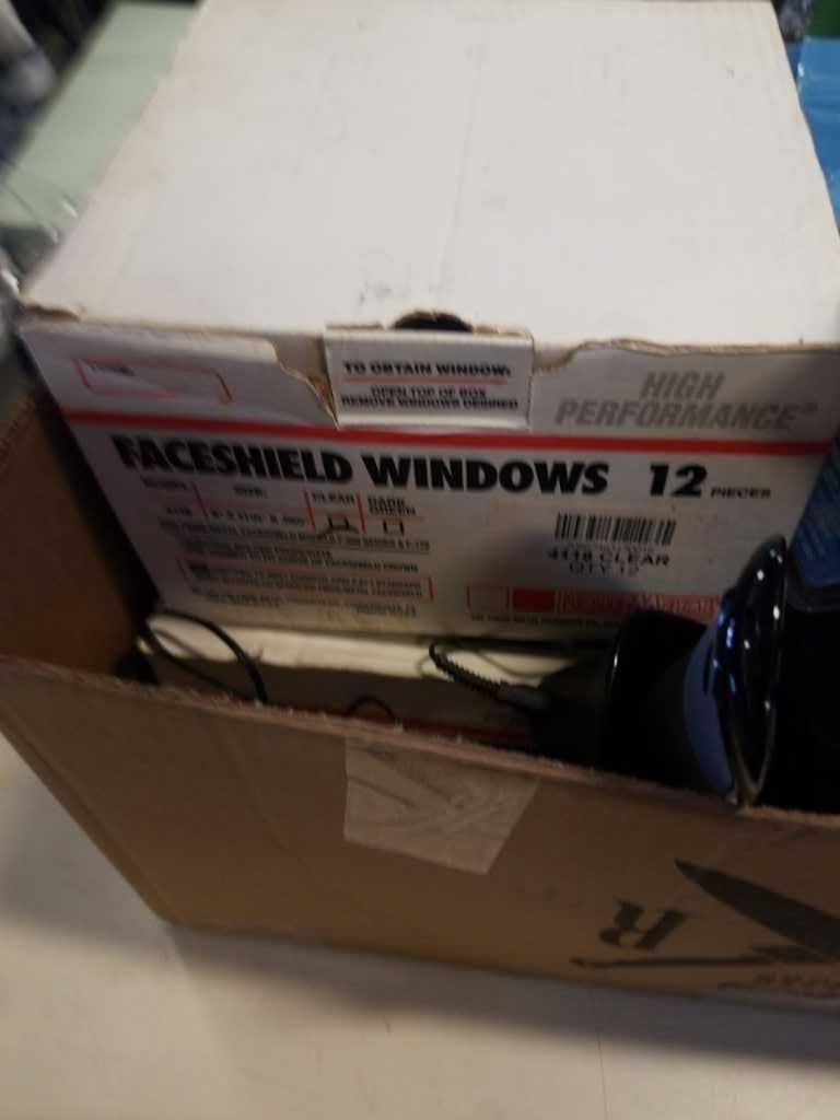 BOX OF NEW FACE SHILEDS, IPHONE SCREEN SAVERS, DOOR DRAFT STOPPERS AND MORE
