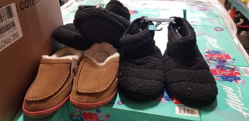 BOX OF NEW MENS AND WOMENS SLIPPERS