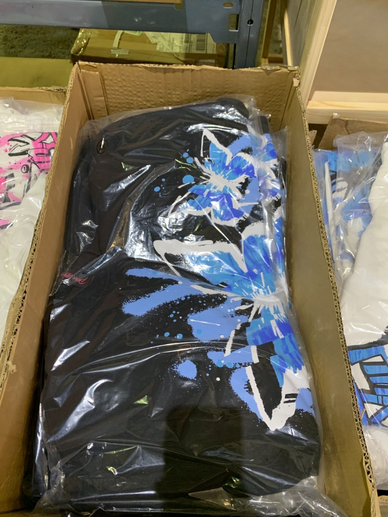 BOX OF NEW PINK ABYSS CREW NECK SWEATERS (BLACK AND BLUE)