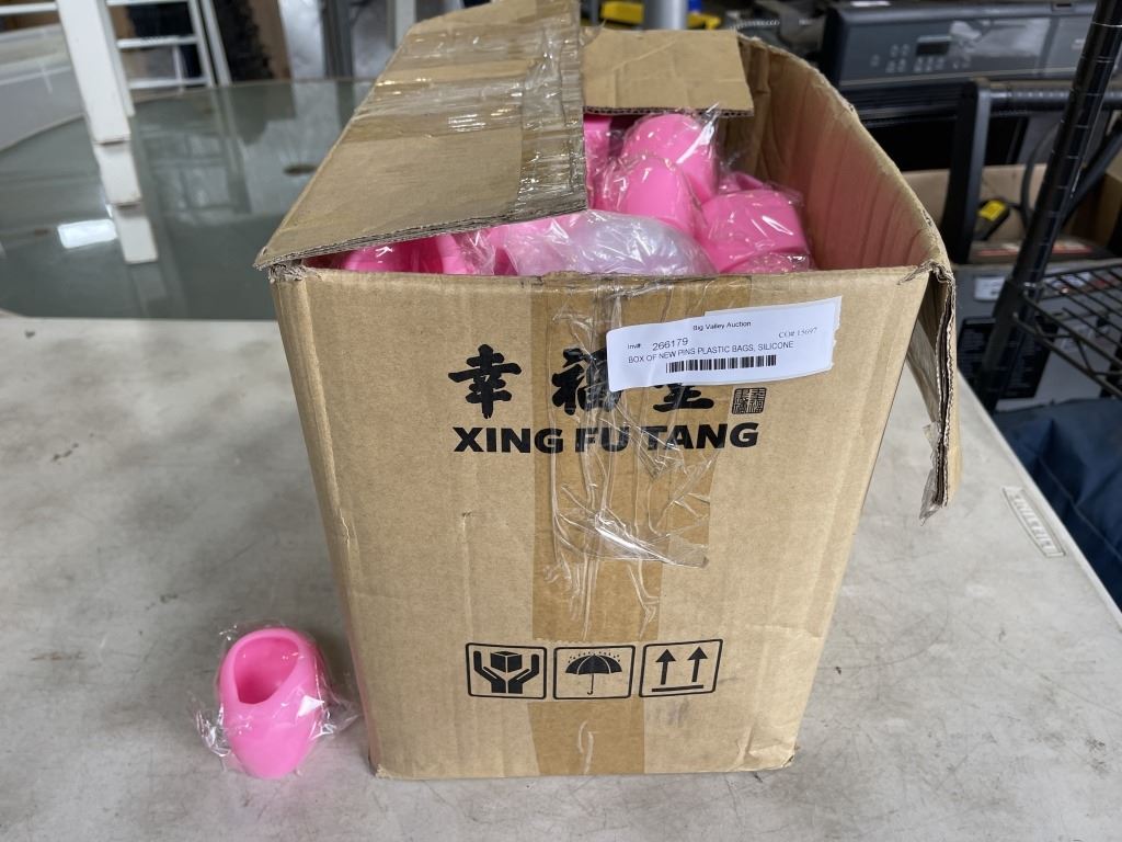 BOX OF NEW PINS PLASTIC BAGS, SILICONE BUNNY HEAD MOLDS AND MORE