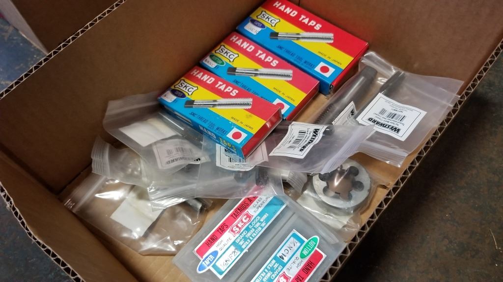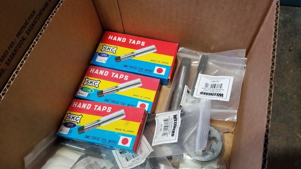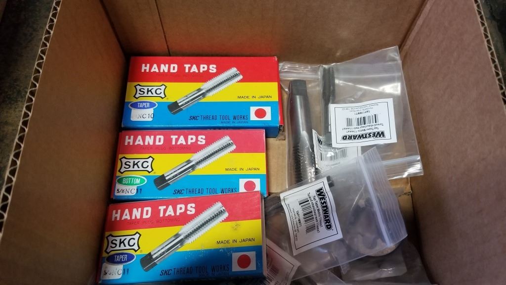 BOX OF NEW TAPS AND HAND TAPS