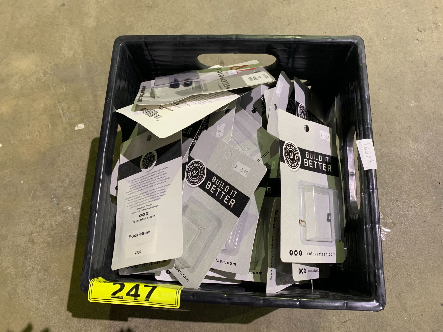 BOX OF NEW VOLQUARTSEN PRODUCTS; HAMMER BUSHINGS, V-LOCK RETAINERS, EDGE EXTRACTORS AND MORE