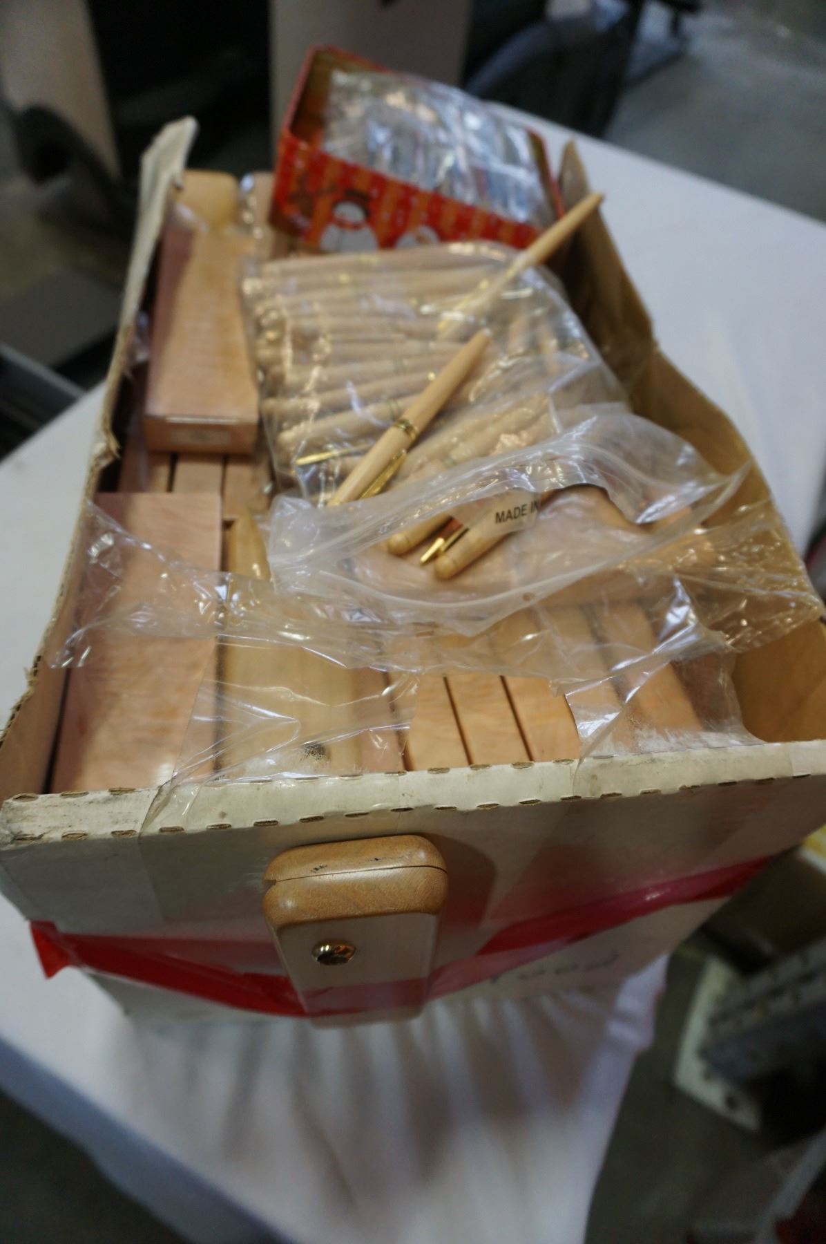 BOX OF PENS, PENCIL, AND FOUNTAIN PENS W/ INDIVIDUAL CASES