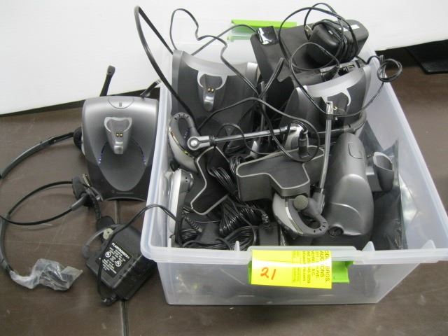 BOX OF PLAYTRONICS HEADSETS FOR TELEPHONES