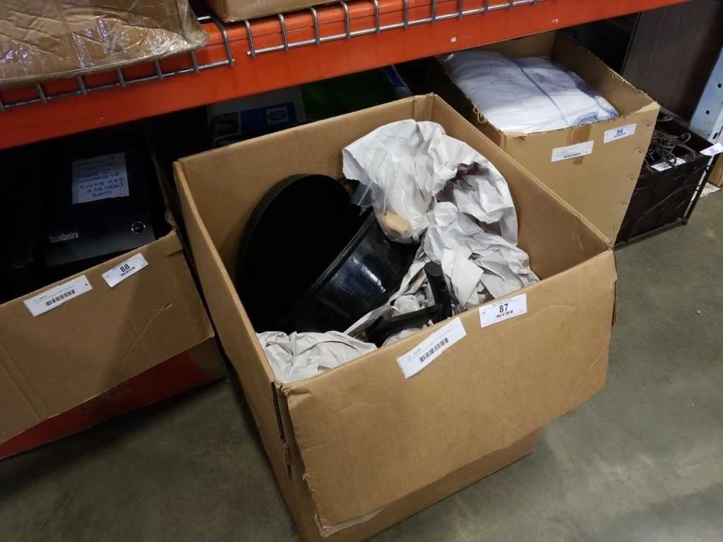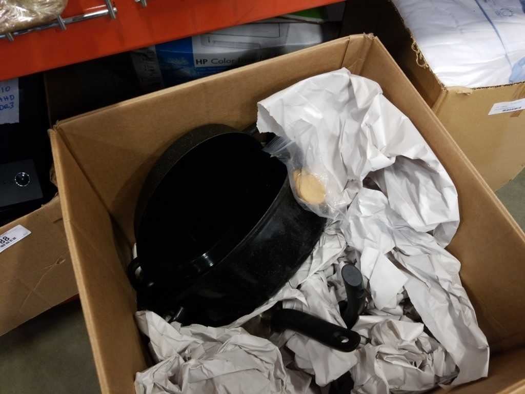 BOX OF POTS, PANS, KITCHEN ITEMS