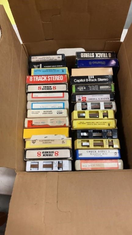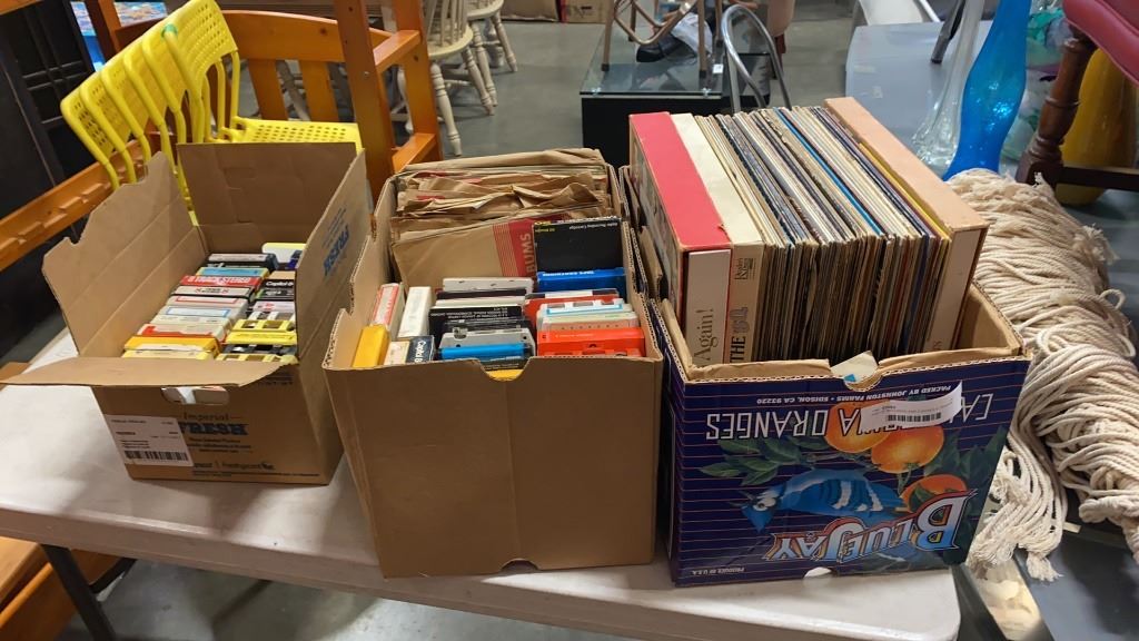 BOX OF RECORDS AND 2 BOXES 8 TRACKS