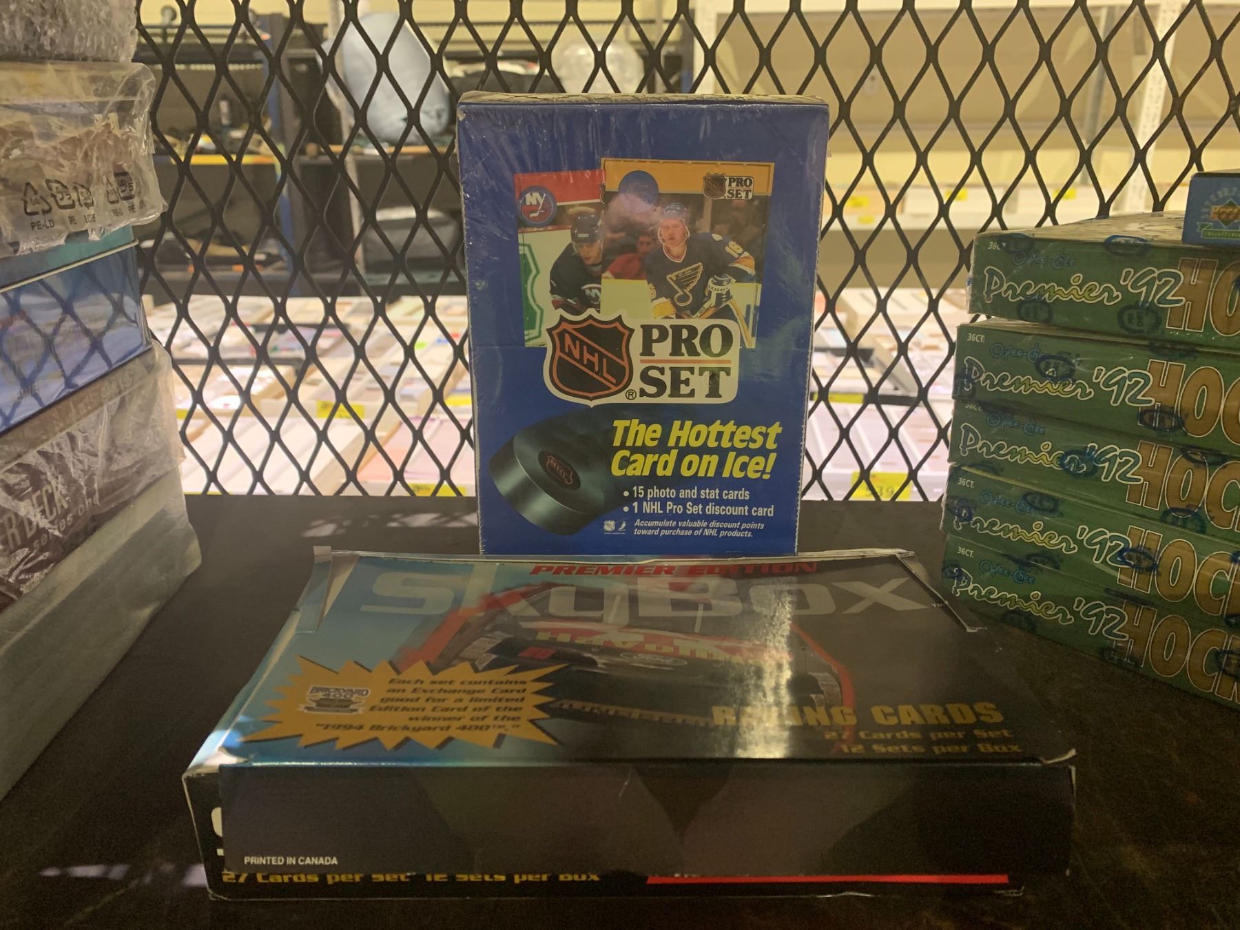 BOX OF SEALED SKYBOX PREMIER EDITION CARD PACKS & SEALED BOX OF 1990 NHL PRO SET CARDS