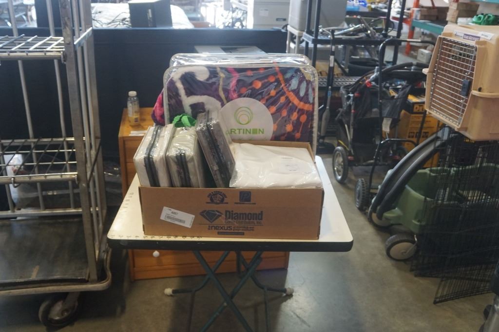 BOX OF SHEET SETS, CURTAINS, PLUSH BLANKET