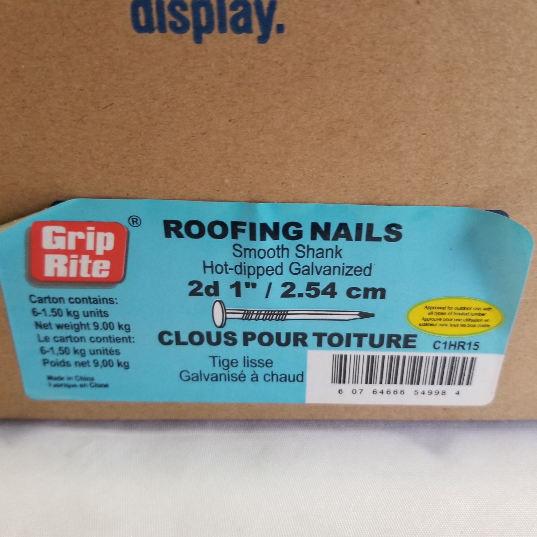 BOX OF SMOOTH SHANK ROOFING NAILS