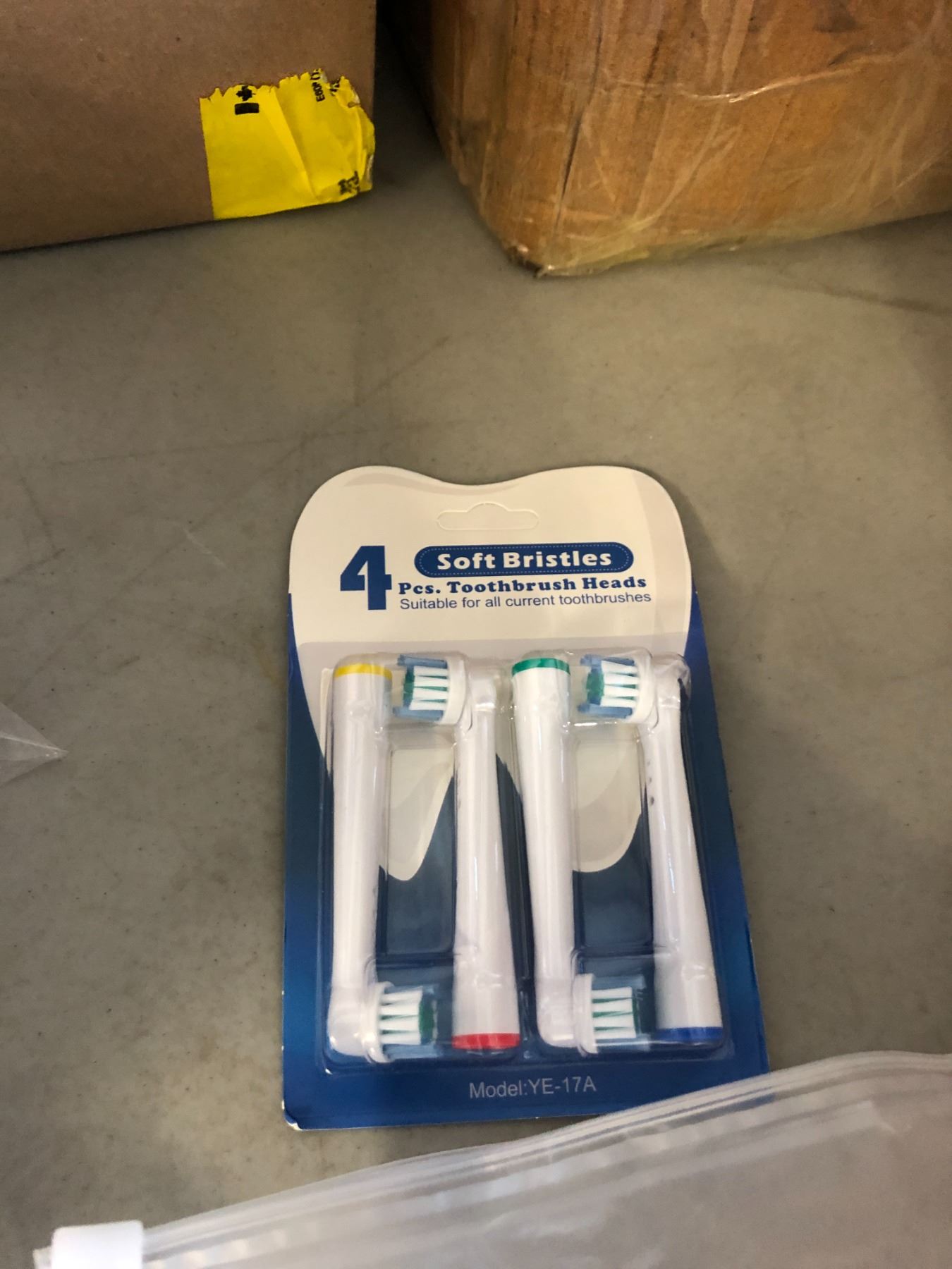 BOX OF SOFT BRISTLE REPLACEMENT TOOTHBRUSH HEADS, MICROPHONE MOUNT BRACKETS AND BOX OF