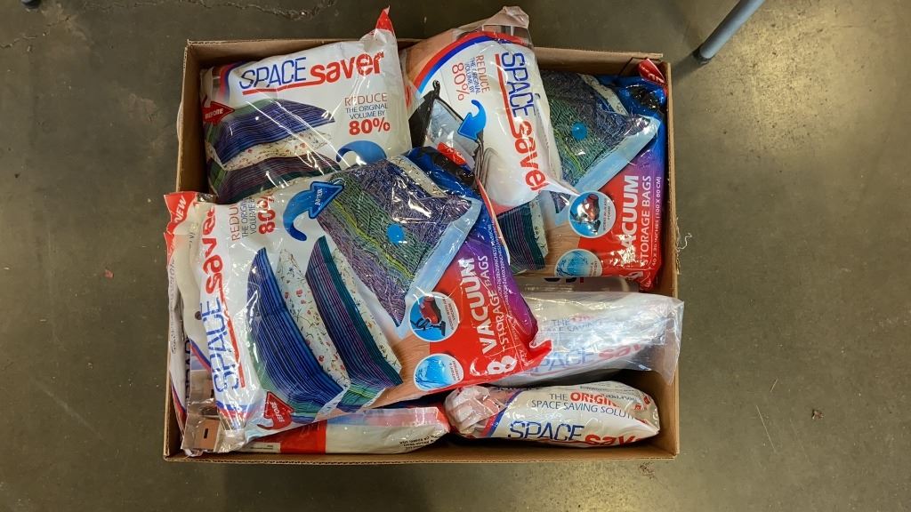 BOX OF SPACE SAVER BAGS - VARIOUS SIZES, SOME W/ PUMPS