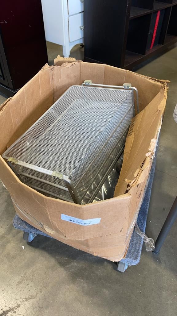 BOX OF STAINLESS STEEL DUCT CLAMPS AND SMALL RACK