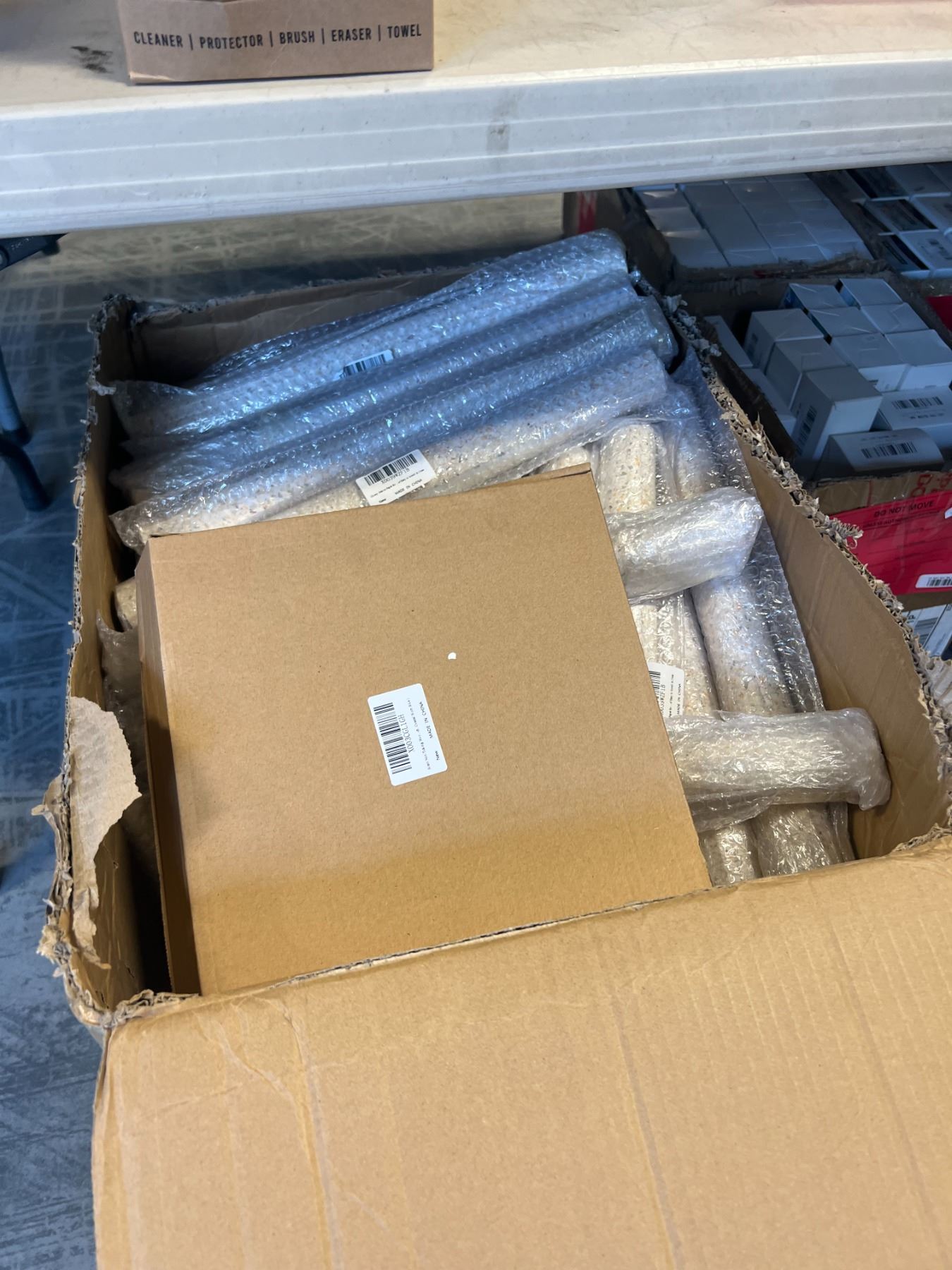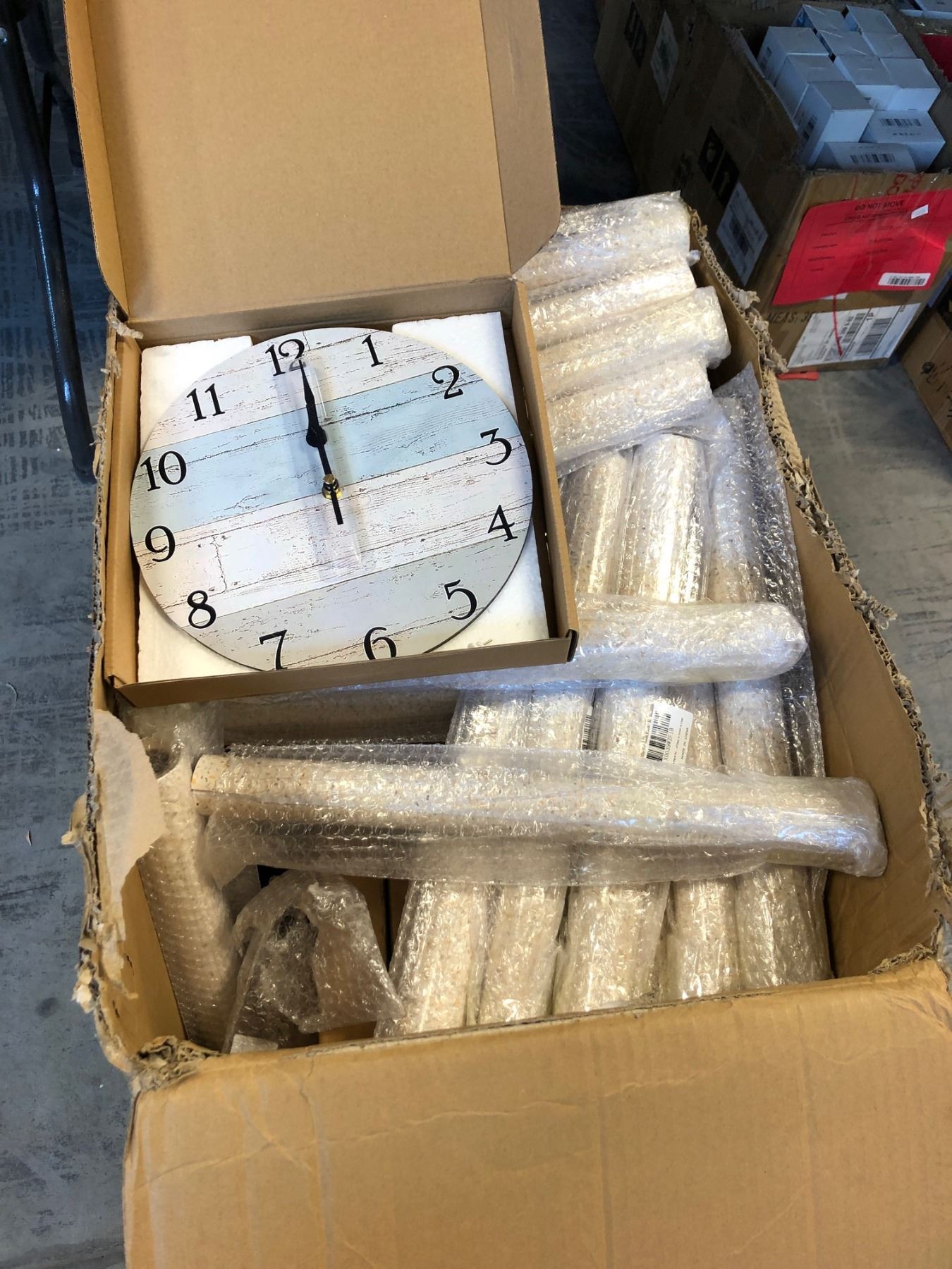 BOX OF STICK SHELF PAPER AND A MISC CLOCK
