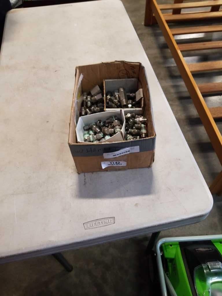 BOX OF SWAGELOK AND PARKER FITTINGS