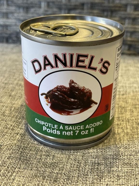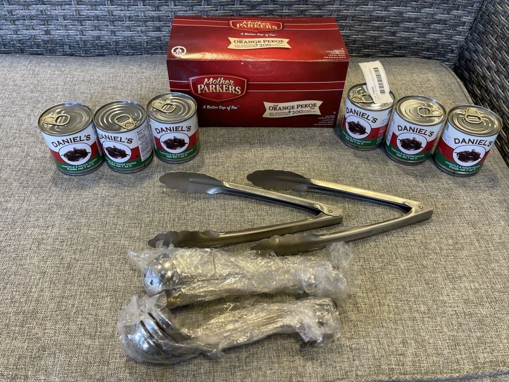 BOX OF TEA AND 6 CANS OF DANIELS CHIPOTLE SAUCE