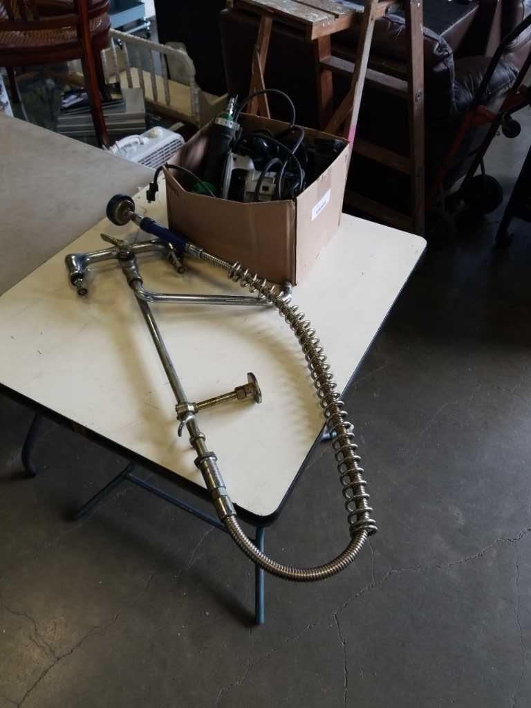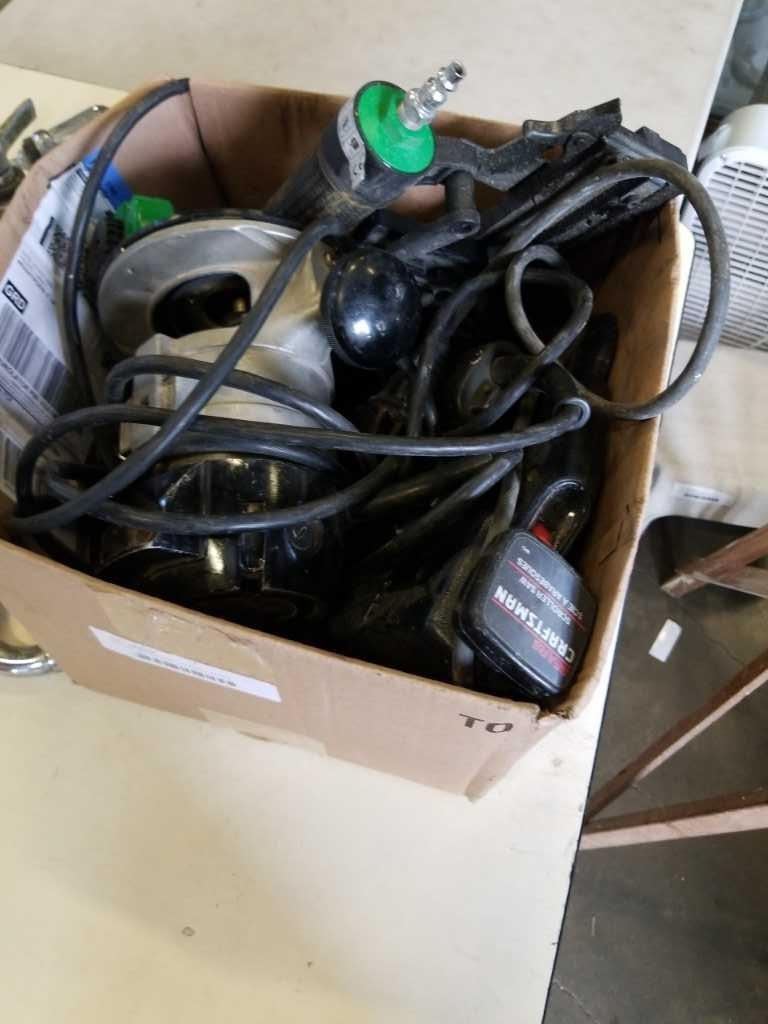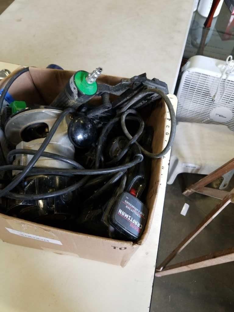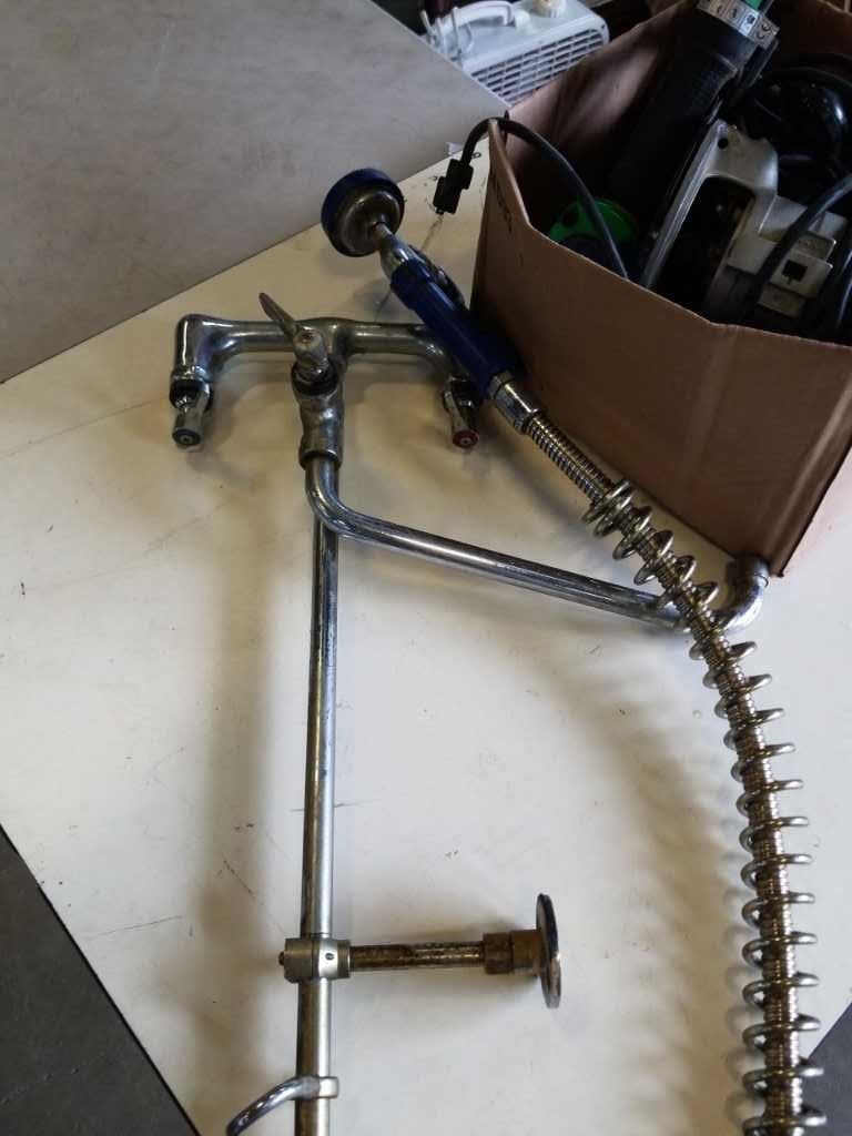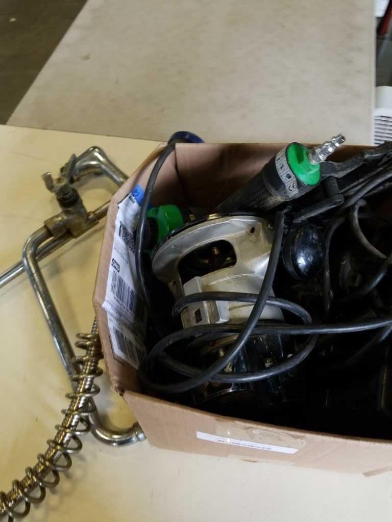 BOX OF TOOLS AND LAUNDRY ROOM FAUCET