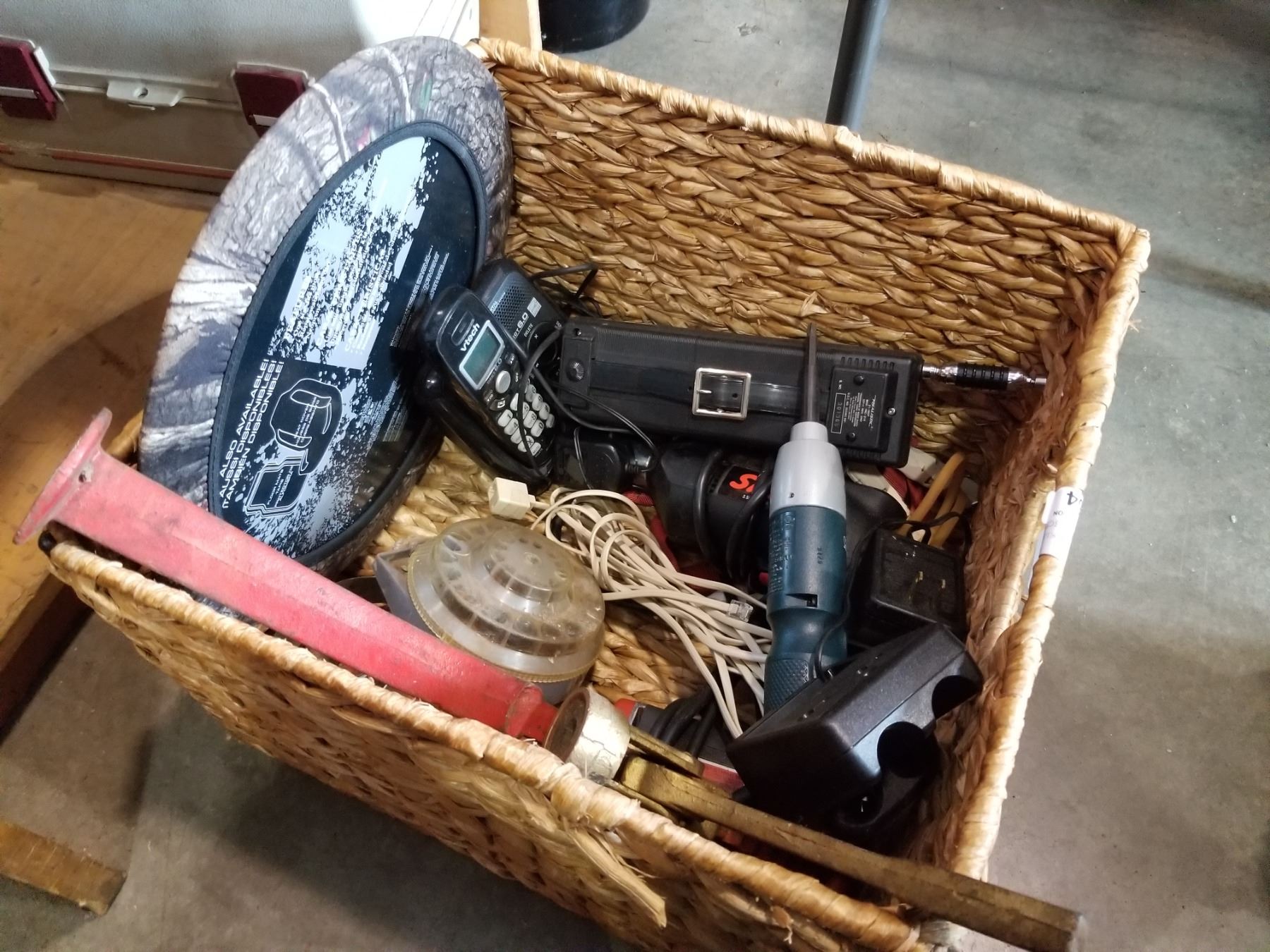 BOX OF TOOLS, ELECTRIC DRILLS, REALISTIC TRANSCEIVER