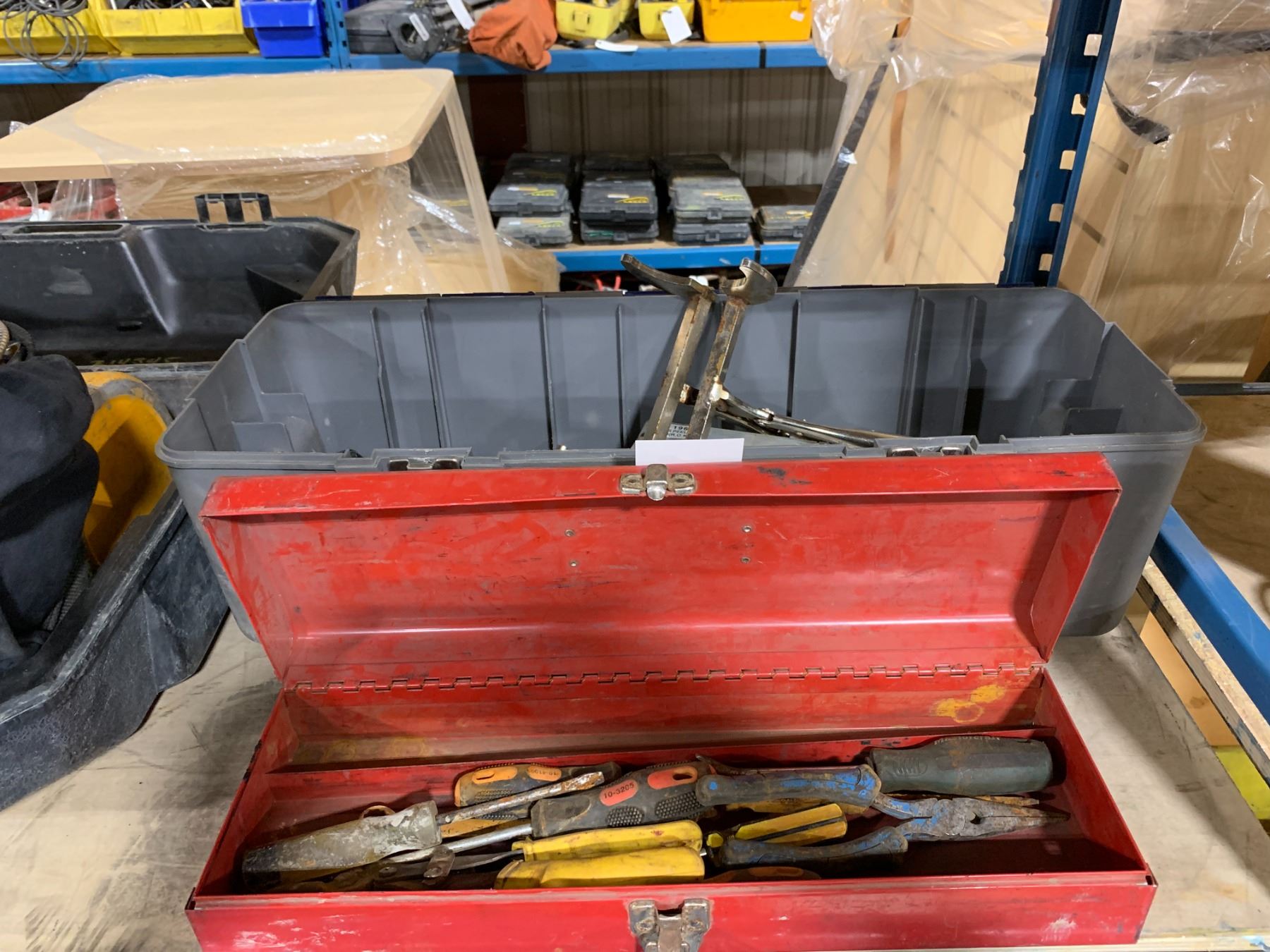 BOX OF VARIOUS TYPES OF IRWIN VISE GRIPS & BOX OF SCREWDRIVERS