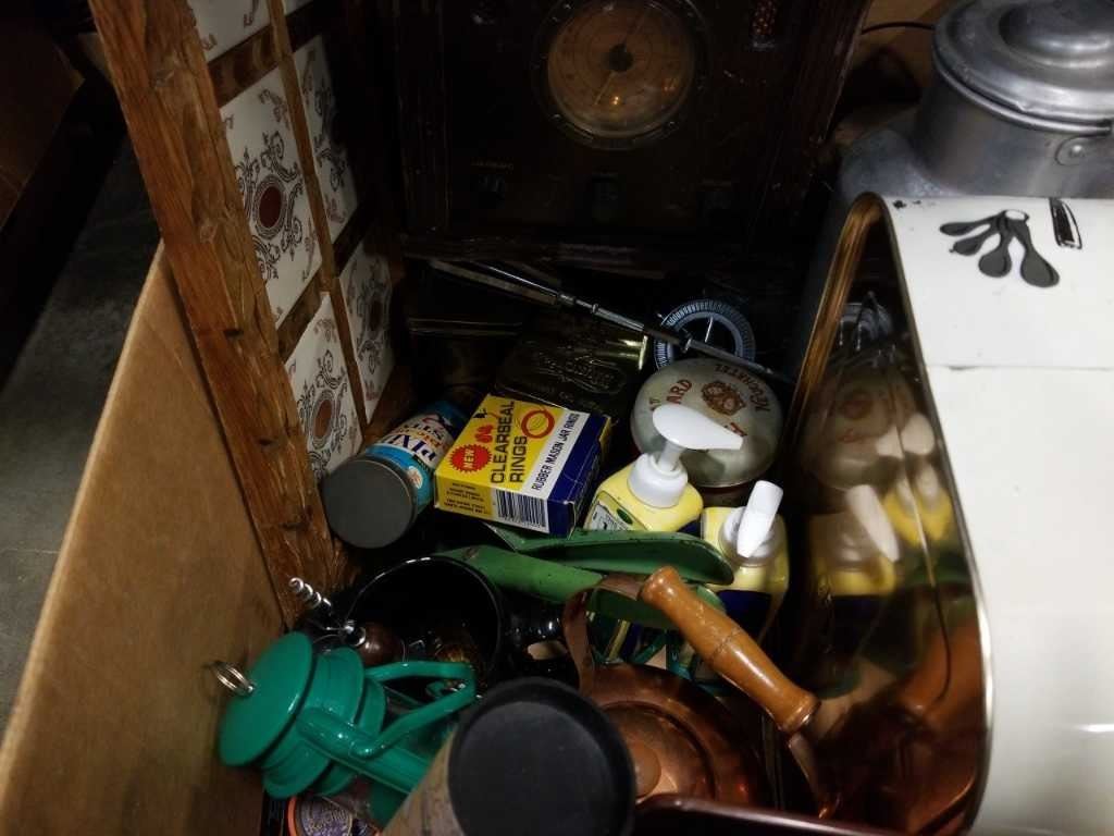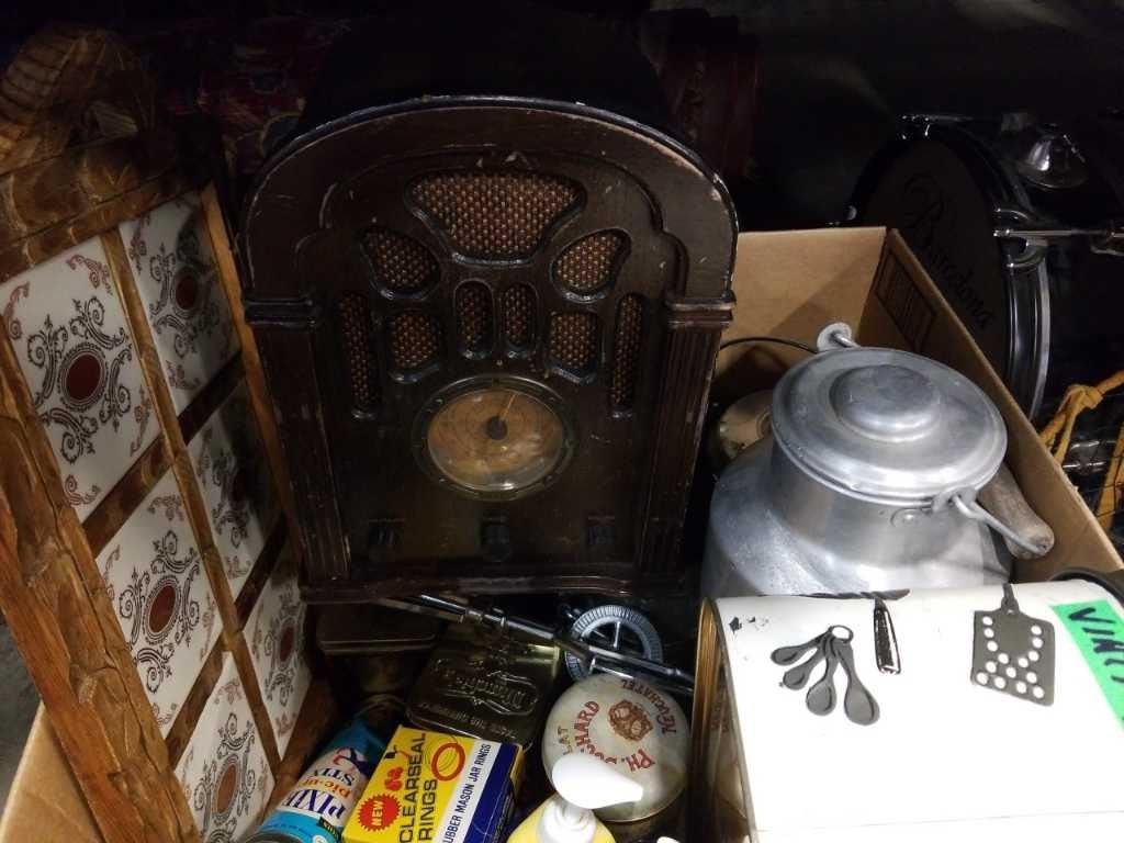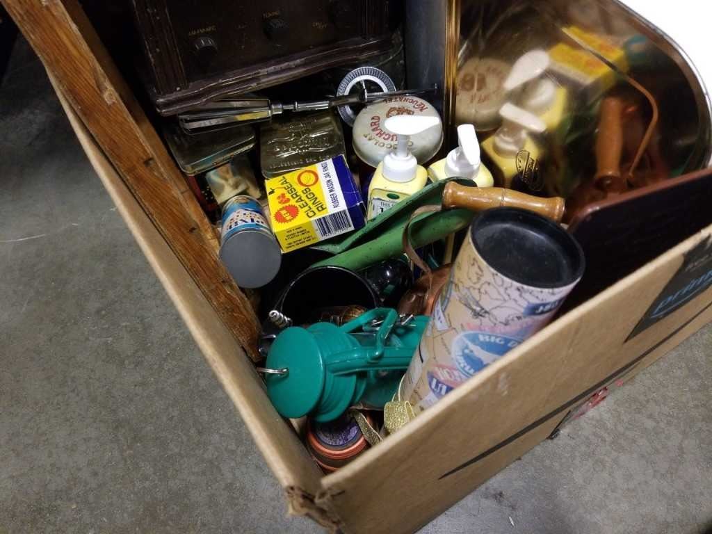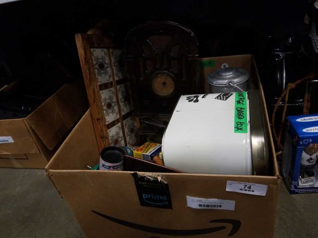 BOX OF VINTAGE COLLECTABLES AND RADIO