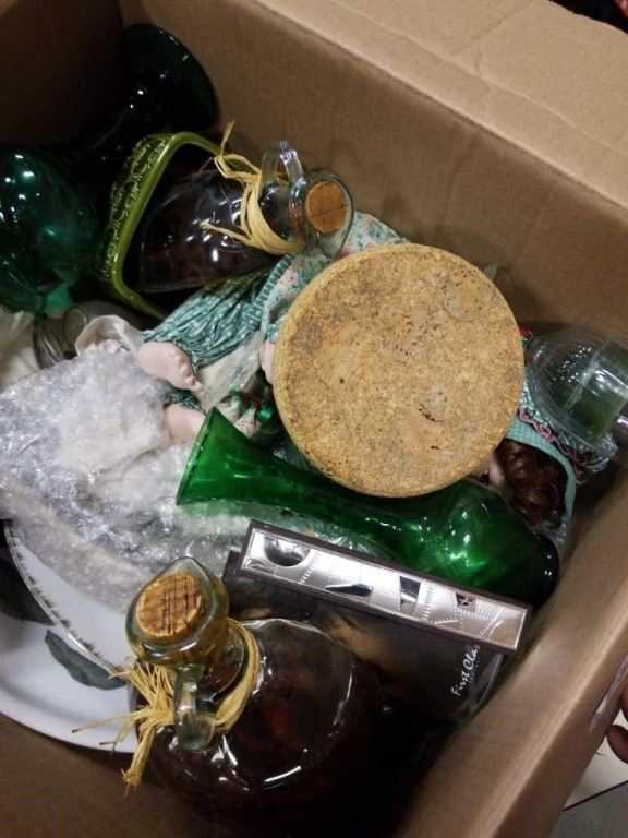 BOX OF VINTAGE COLLECTIBLES AND CRYSTAL
