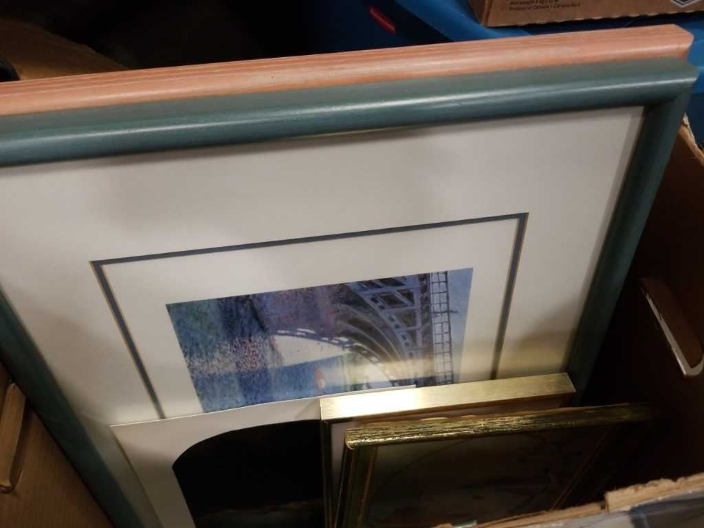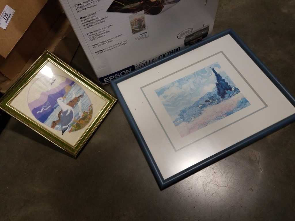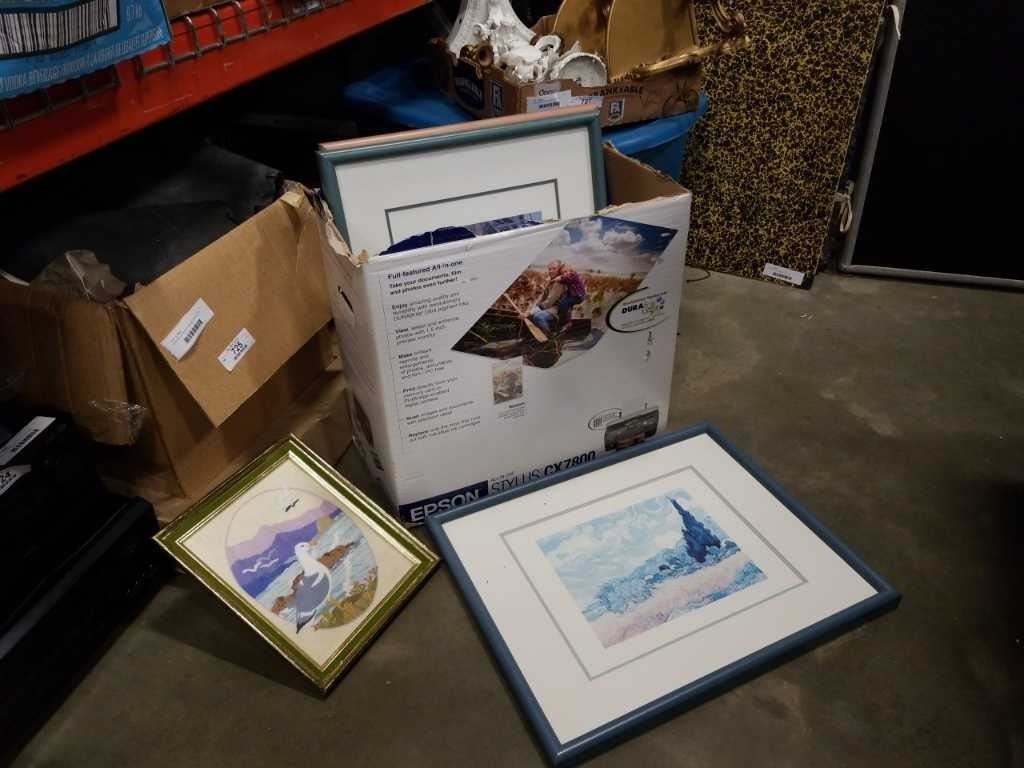 BOX OF WATERCOLOR AND NEEDLEPOINT PICTURES