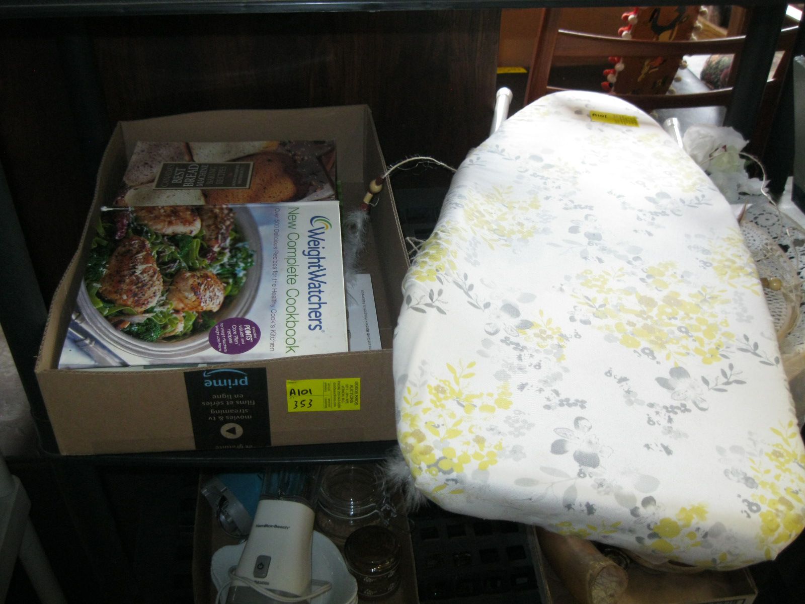 BOX W/ASST. COOKBOOKS & SM. IRONING BOARD