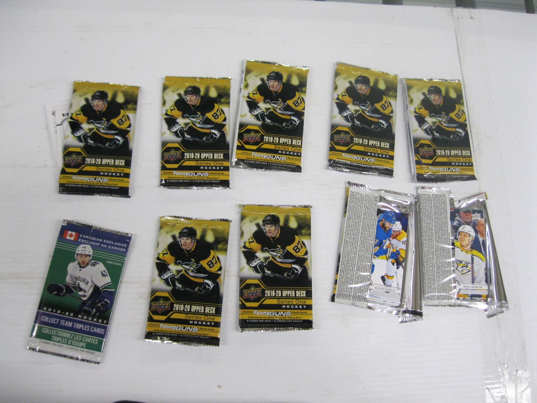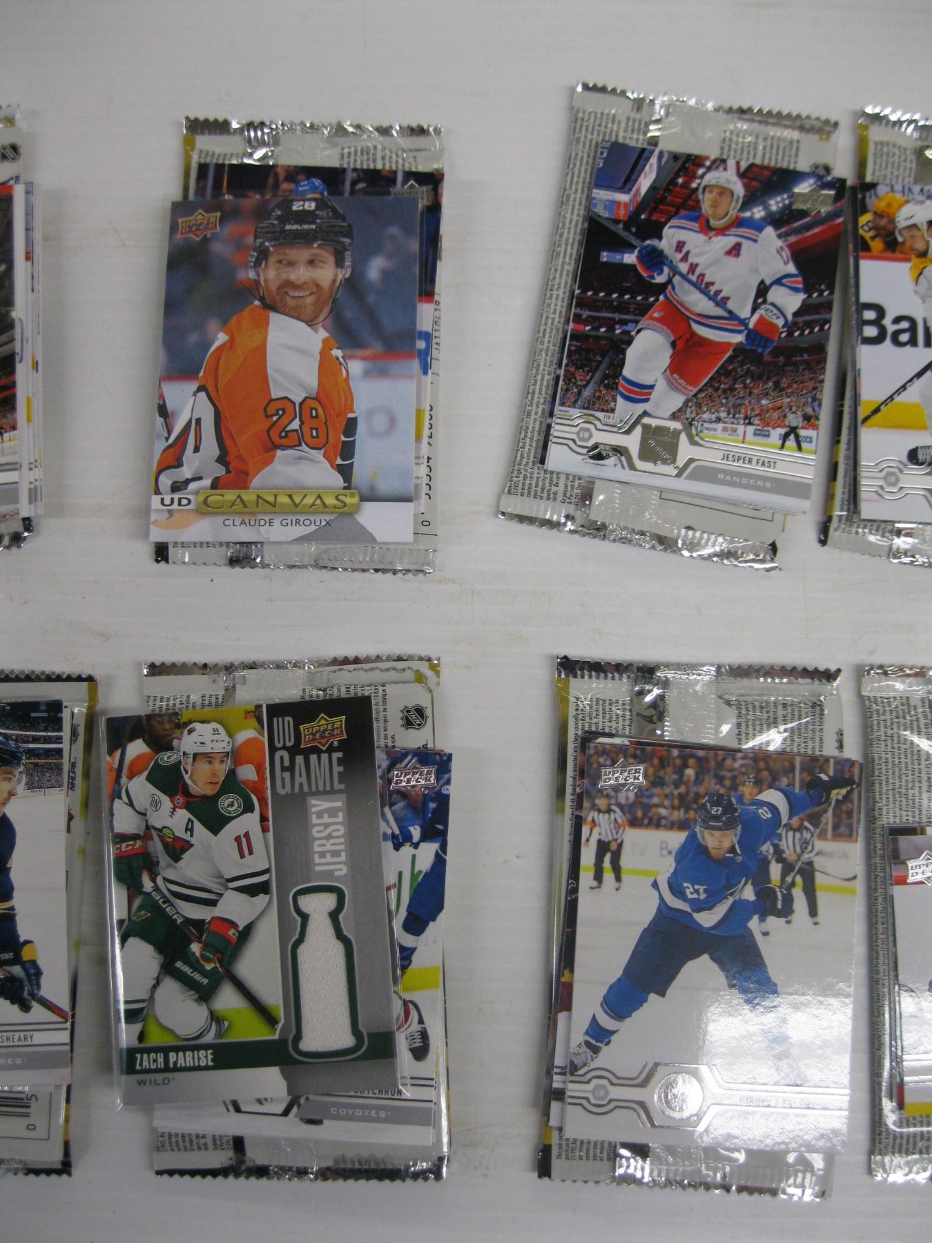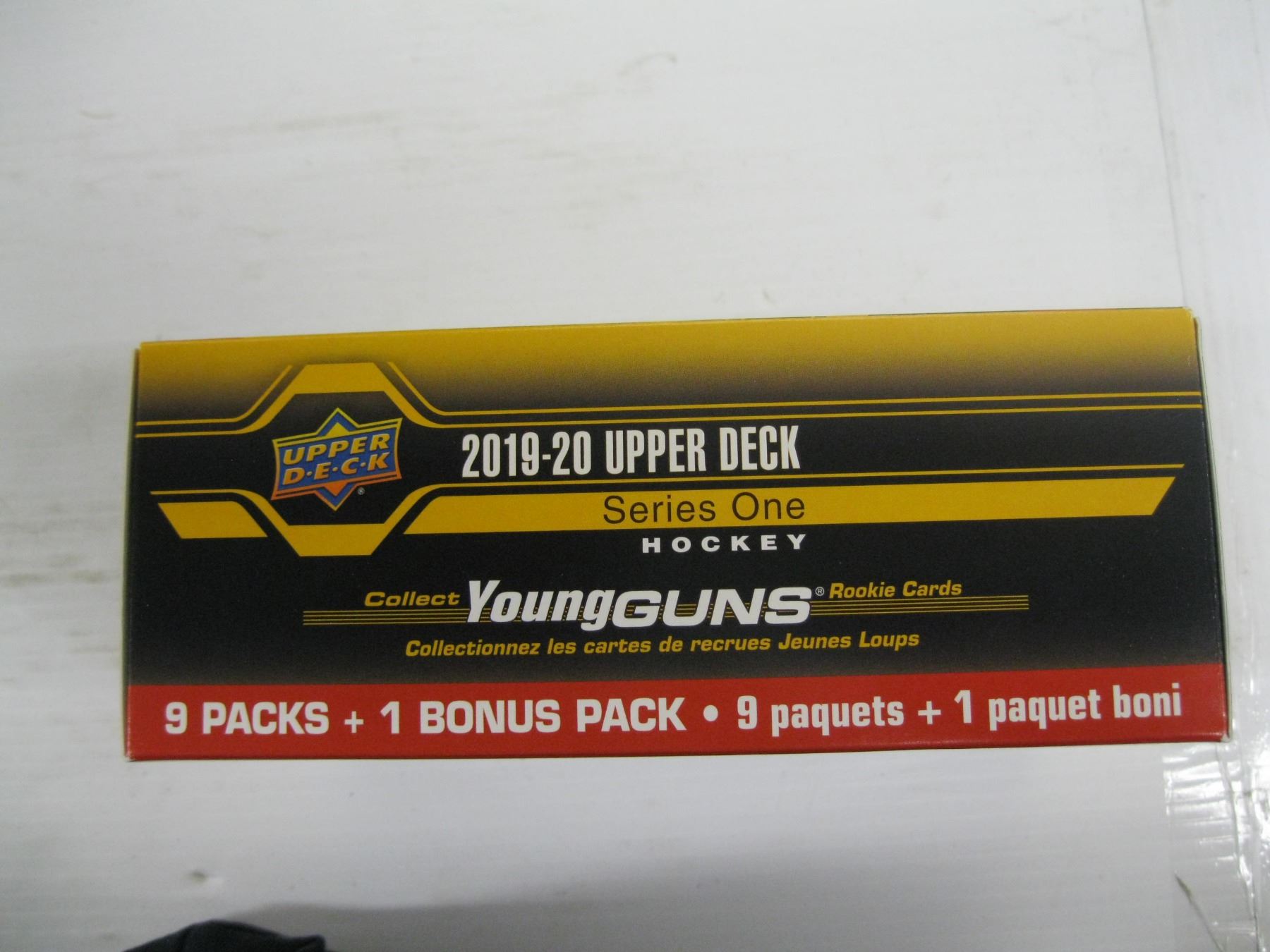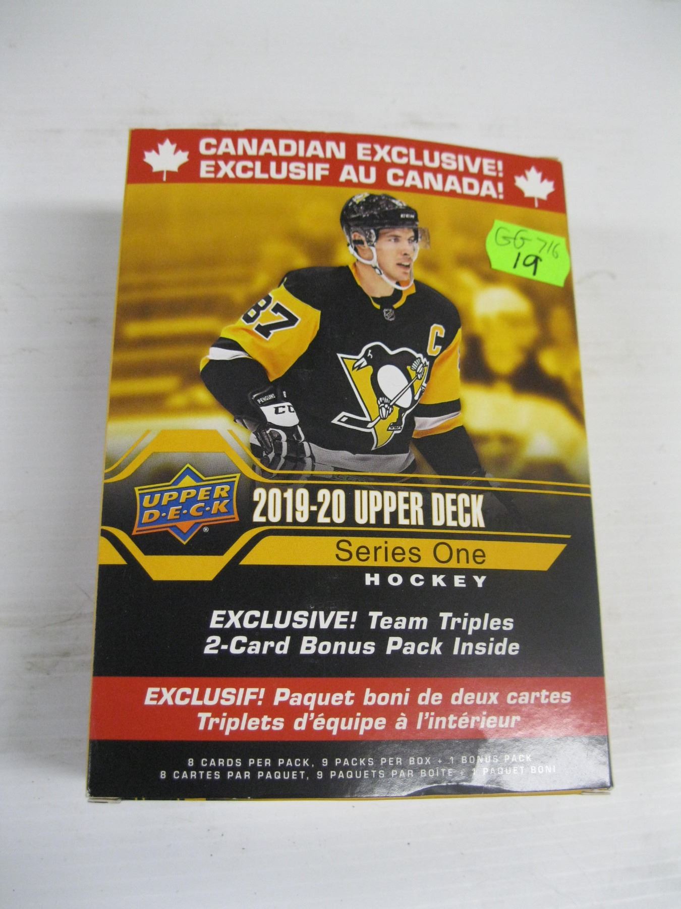 BOX W/COLLECTOR HOCKEY CARDS, 2019, 2020 UPPER DECK, PACKAGES INSIDE HAVE BEEN OPENED