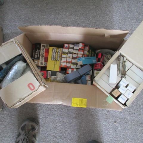 BOX WITH ASST. TUBES, ELECTRONICS, ETC.