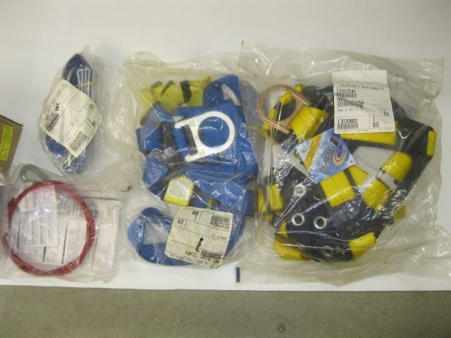 BOX WITH NEW SAFETY HARNESSES, BELTS ETC.