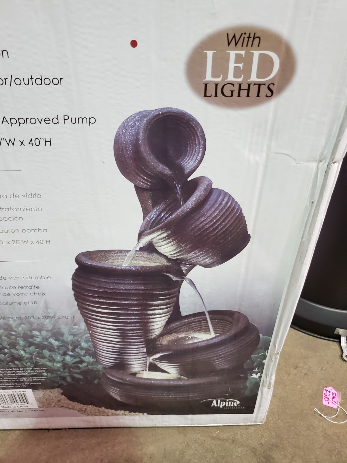 *BOXED* CASCADING FOUNTAINS INDOOR/OUTDOOR WATER FOUNTAIN WITH LED LIGHTS & PUMP 20"L X 20"W X 40"H