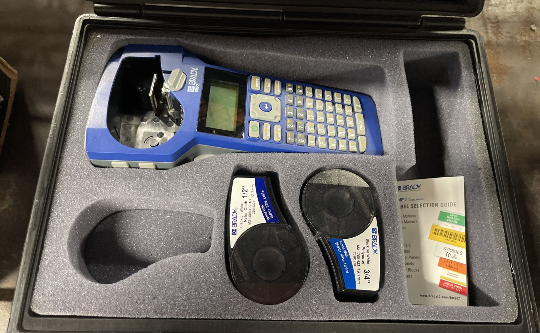 BRADY BMP21 HANDHELD LABEL MAKER IN A HARD TRANSPORT CASE