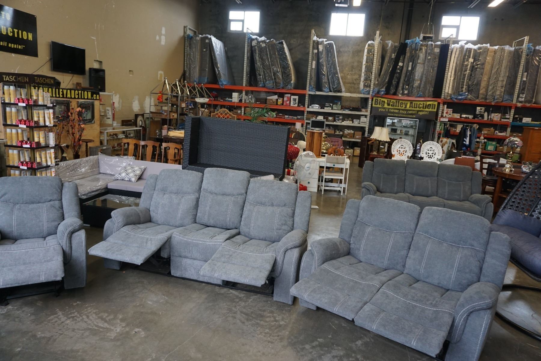 BRAND NEW 3 PIECE FABRIC RECLINING SOFA SET- ROCKER RECLINER, LOVE SEAT, AND SOFA W/ FLIP DOWN CONSOLE - RETAIL $2299