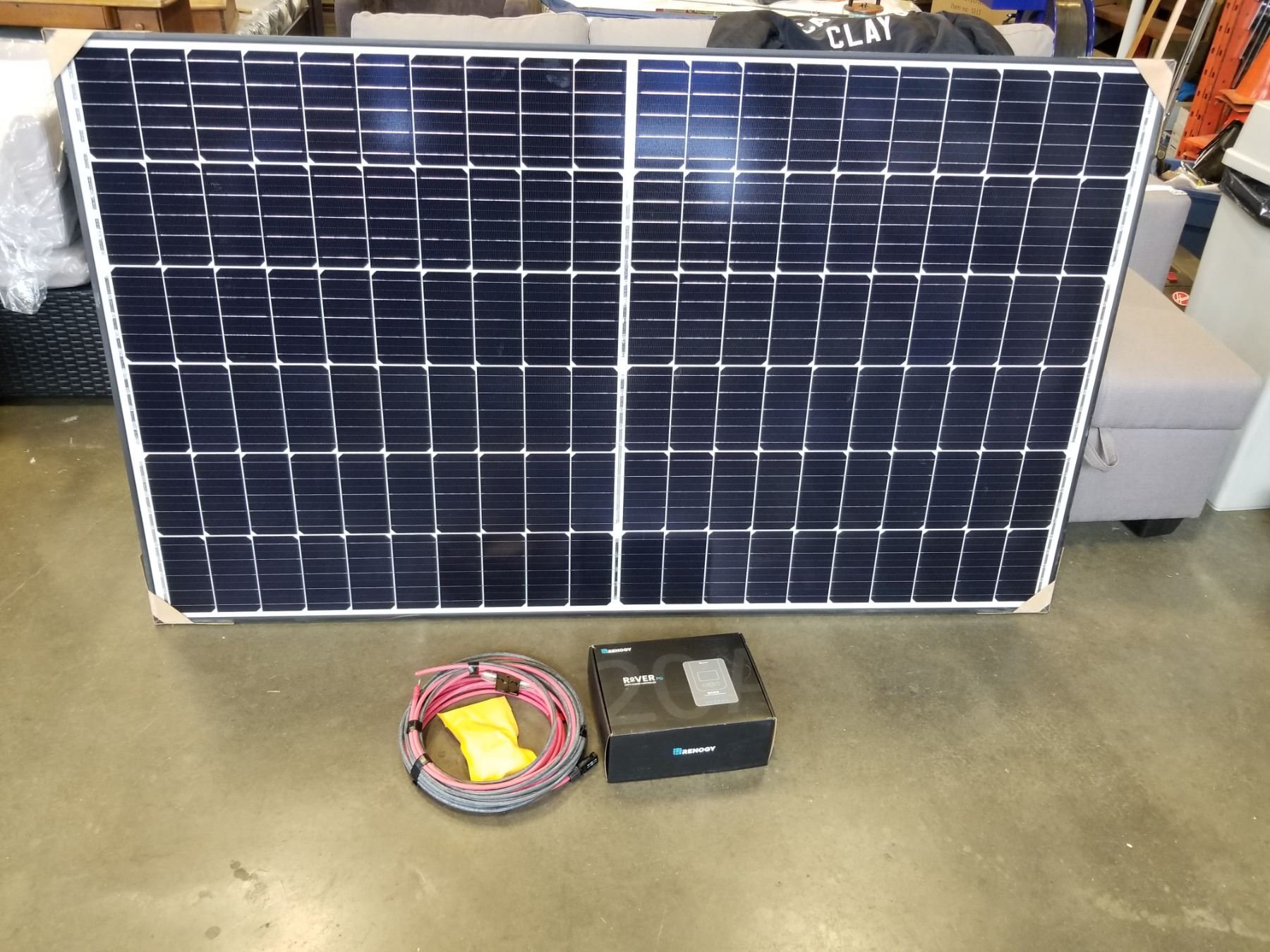 BRAND NEW 300 WATT RENOGY SOLAR PACKAGE, WITH SOLAR CHARGE CONTROLLER, WIRING, IN LINE SWITCH AND 40" X 67" SOLAR PANEL - RETAIL $999