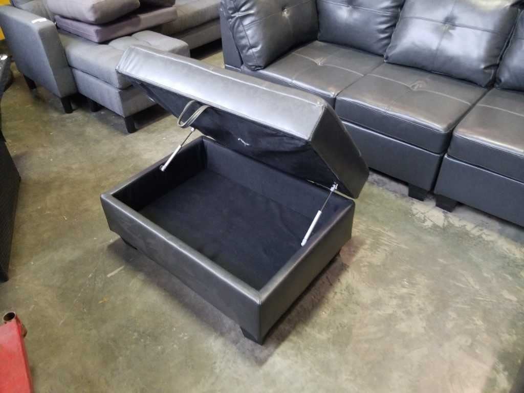 BRAND NEW 4 PIECE GREY AIR LEATHER SECTIONAL SOFA W/ REVERSIBLE CHAISE AND STORAGE OTTOMAN - RETAIL
