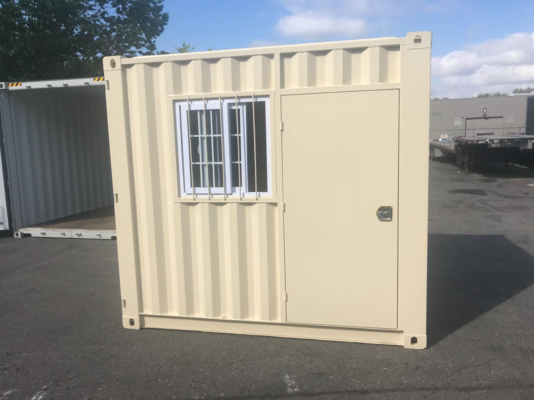 BRAND NEW 9' SHIPPING STORAGE CONTAINER, PORTABLE OFFICE, WITH DOOR, WINDOW AND REAR DOOR