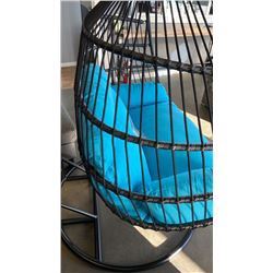 BRAND NEW BLUE CUSHION DOUBLE HANGING EGG CHAIR - RETAIL $1969 W/ FOLDABLE FRAME, POWDER COATED STEEL FRAME, RATED FOR 600LBS