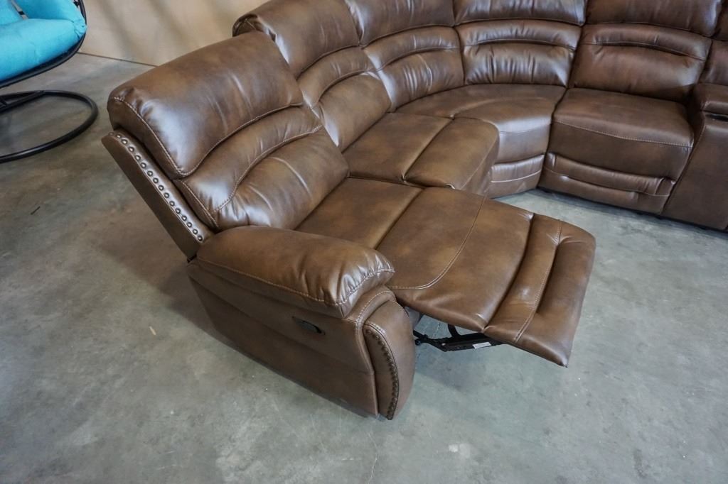 BRAND NEW BROWN AIR LEATHER STUDDED 3PC RECLINING SECTIONAL SOFA W/ CONSOLE - RETAIL $2599